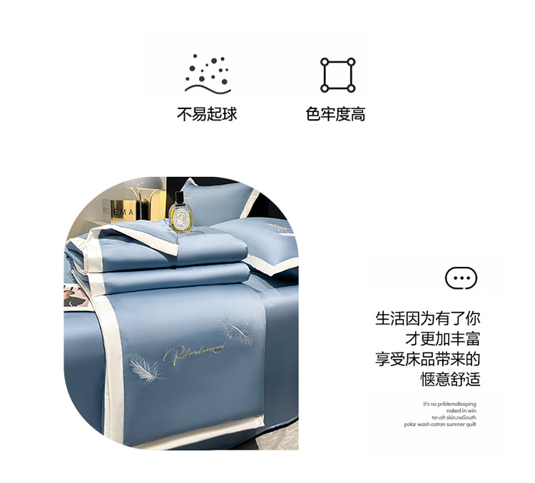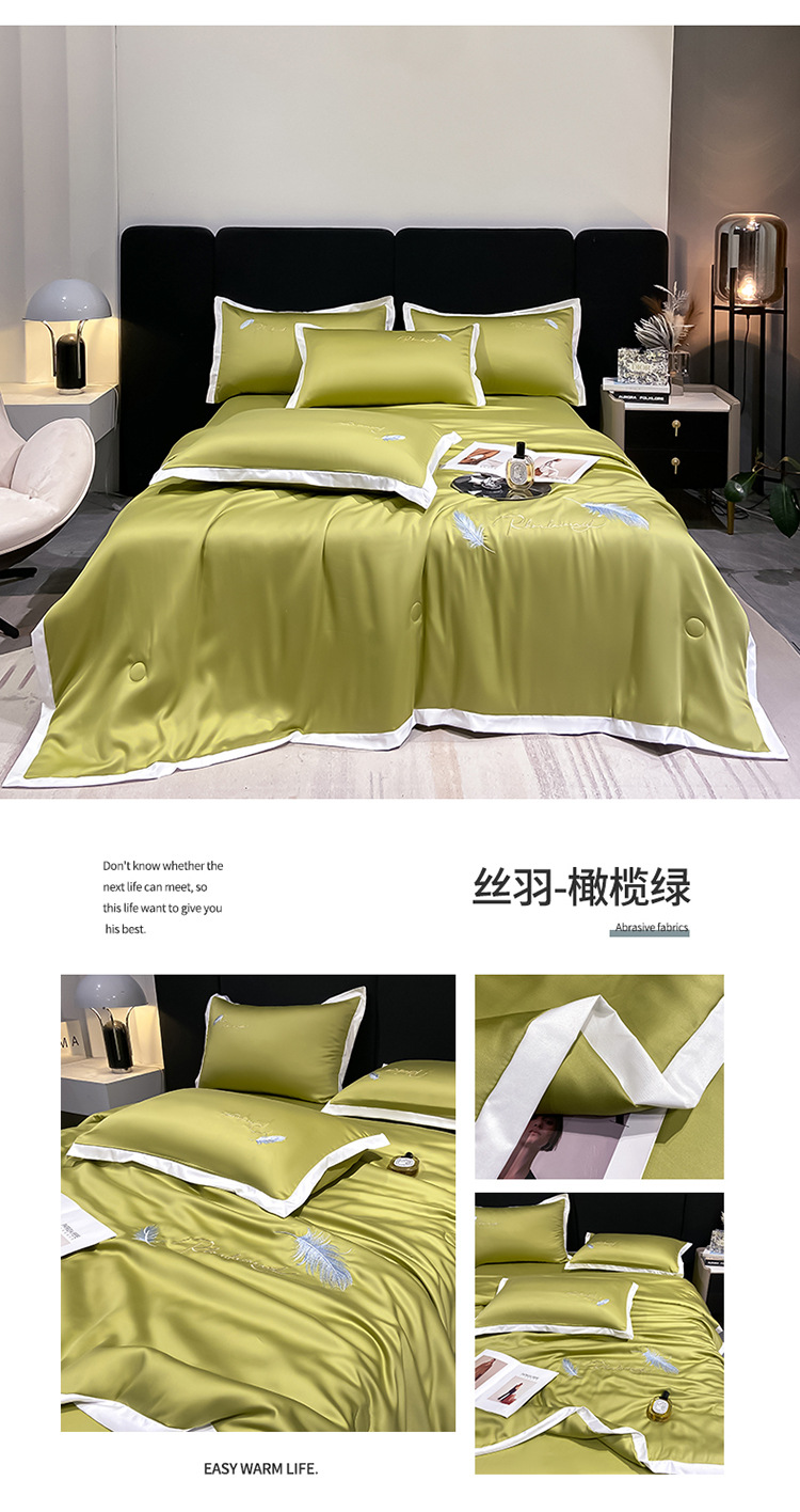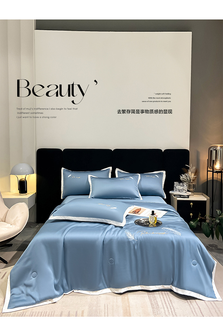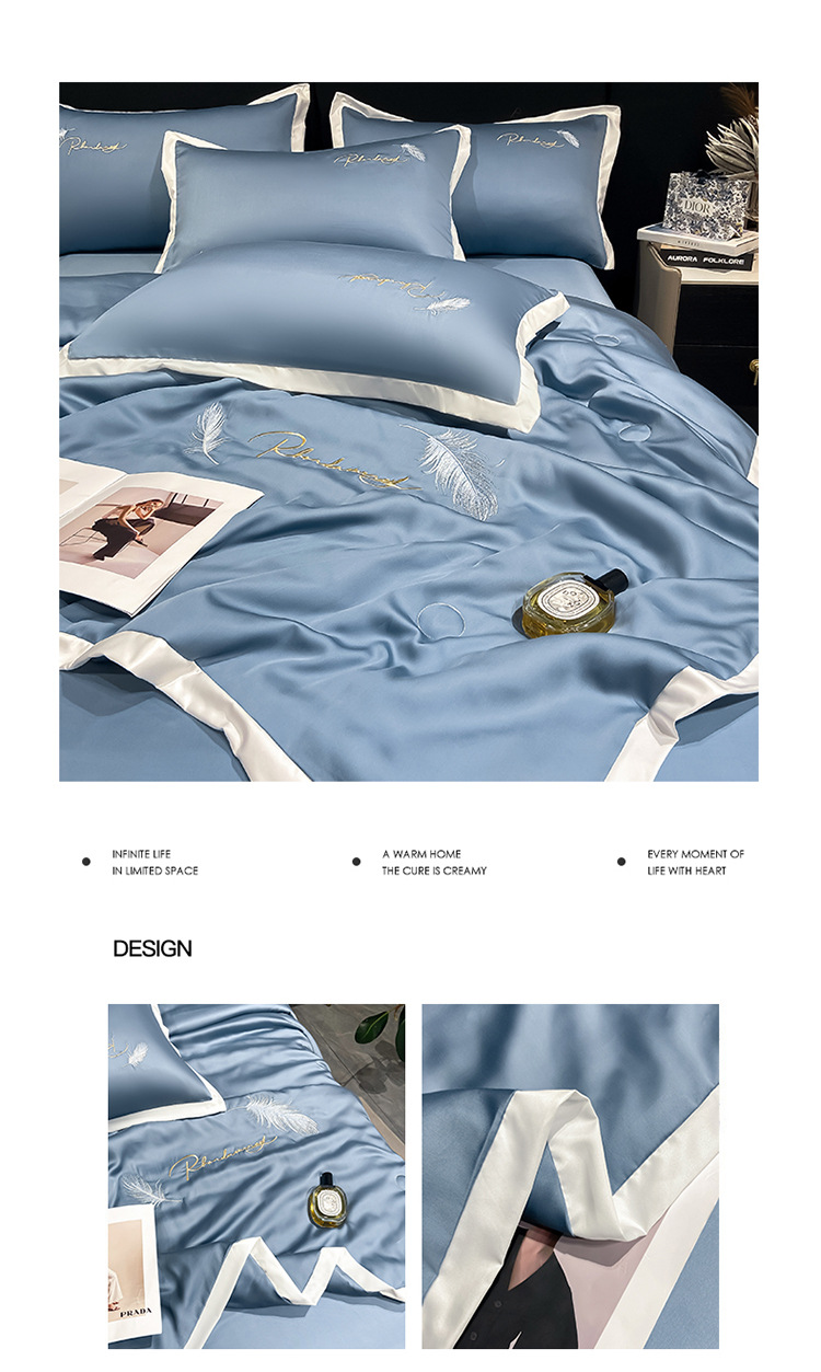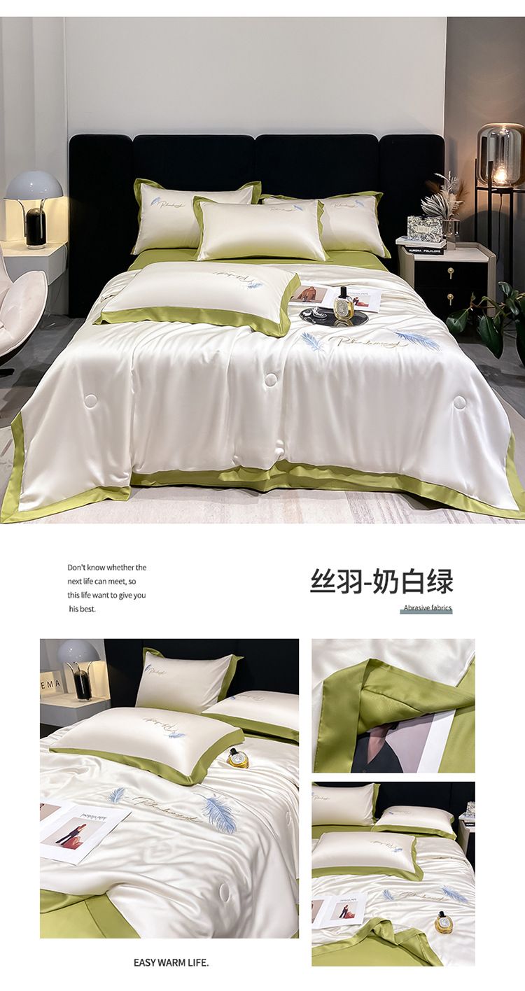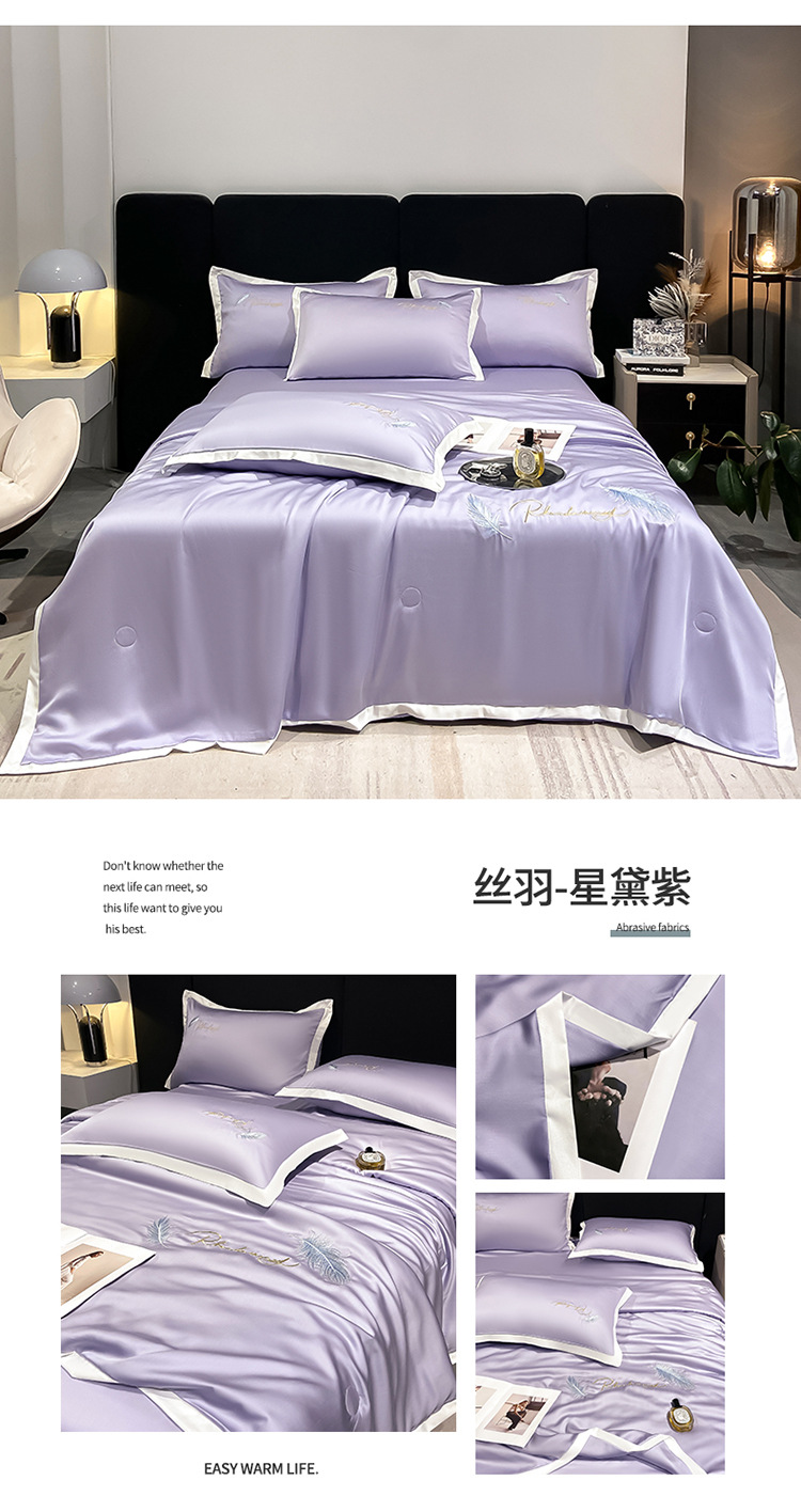 가벼운 럭셔리 아이스 실크 시원한 여름 퀼터 4 피스 단색 자수 에어컨 퀼터 기계 빨 여름 학생 기숙사 퀼터 도매