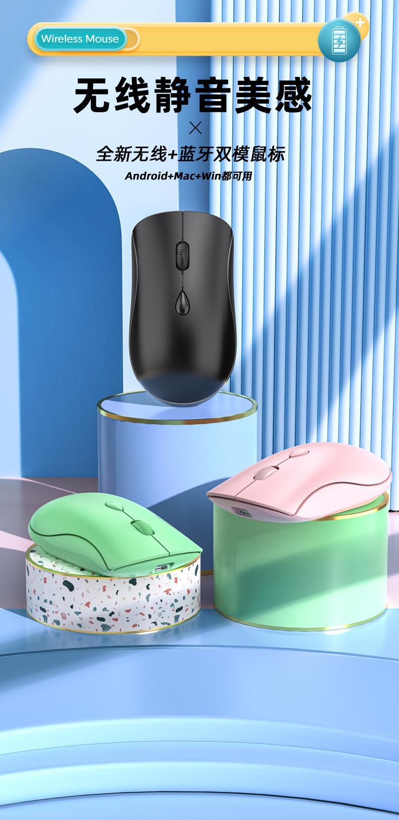 도매 충전 음소거 듀얼 모드 무선 마우스 데스크탑 노트북 범용 광전 선물 블루투스 방울 귀여운