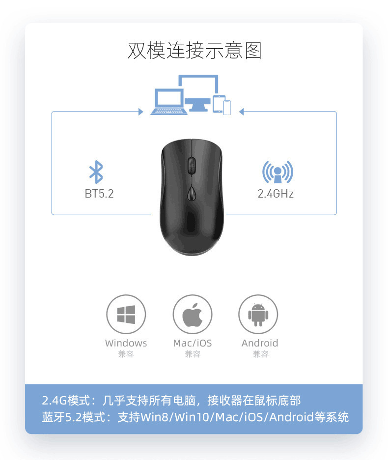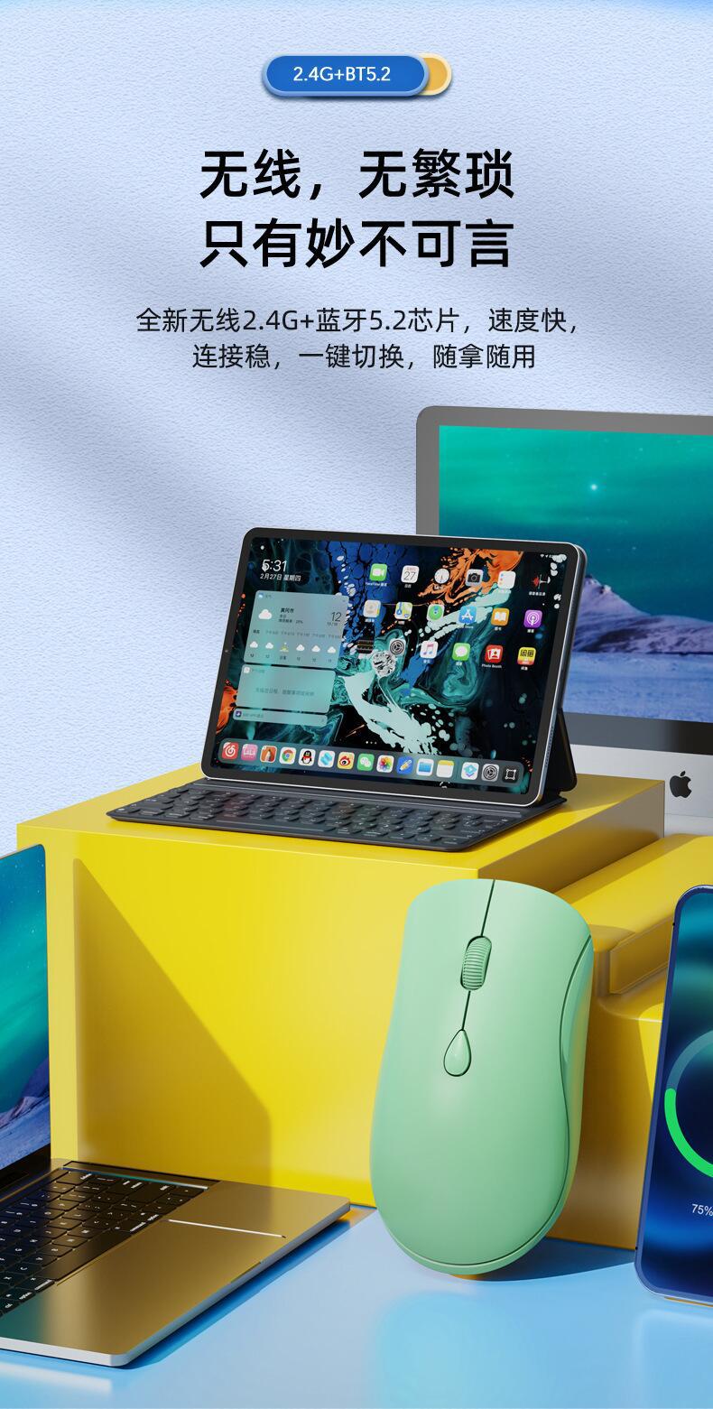 도매 충전 음소거 듀얼 모드 무선 마우스 데스크탑 노트북 범용 광전 선물 블루투스 방울 귀여운스토어 가기