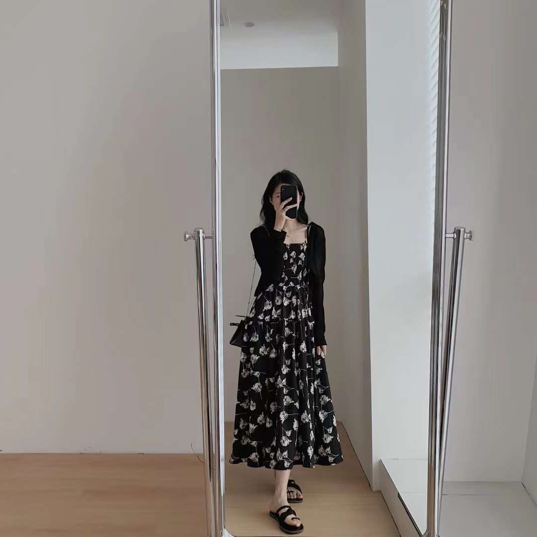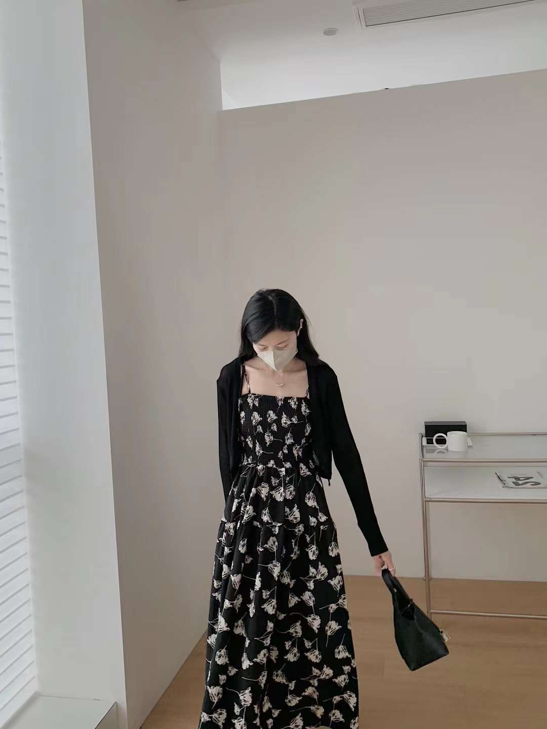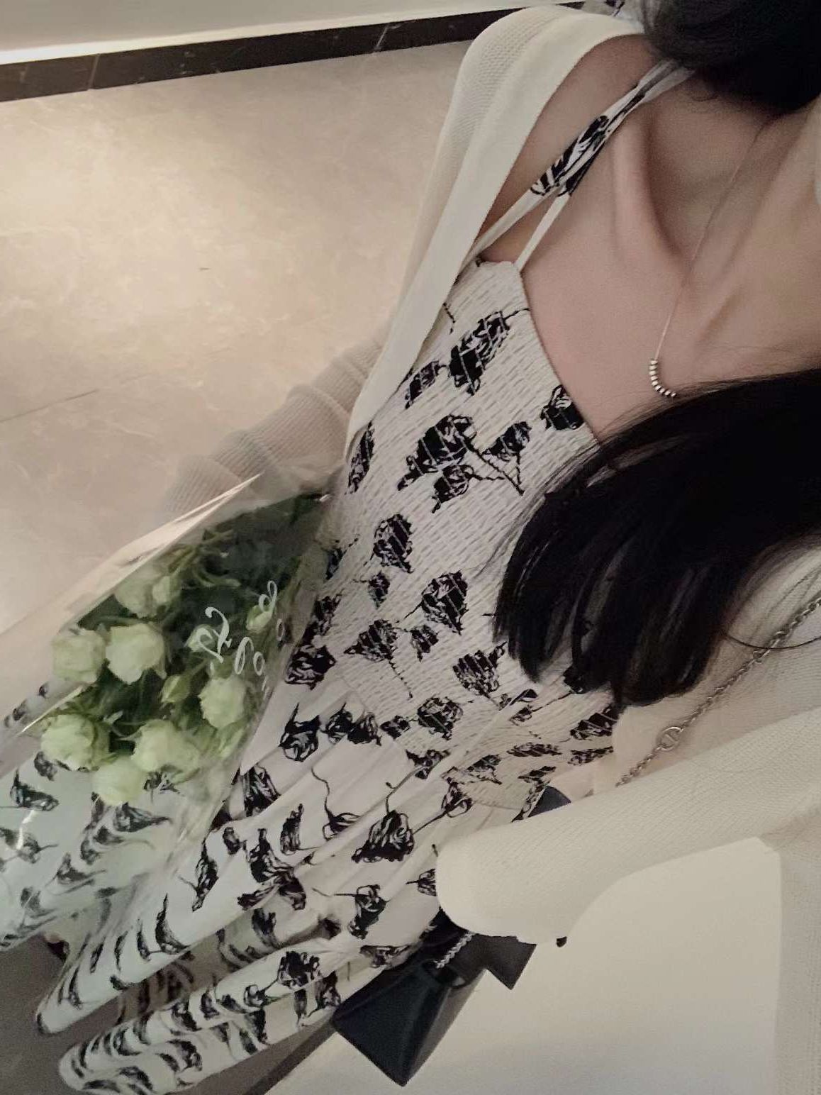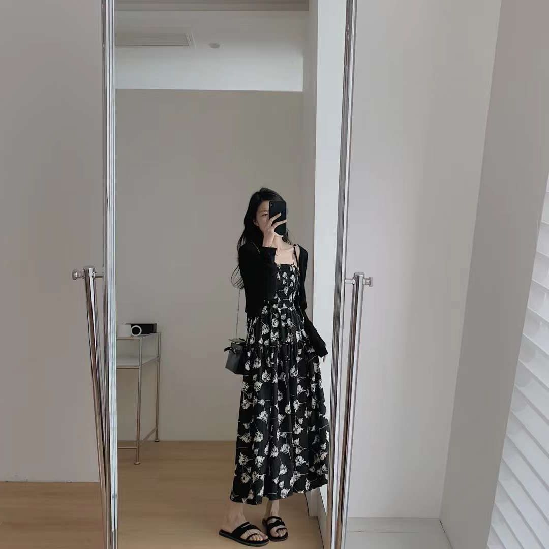 Aiyixuan 차 휴식 프랑스 꽃 슬링 원피스 여자의 여름 고급 기질 슬리밍 세트스토어 가기