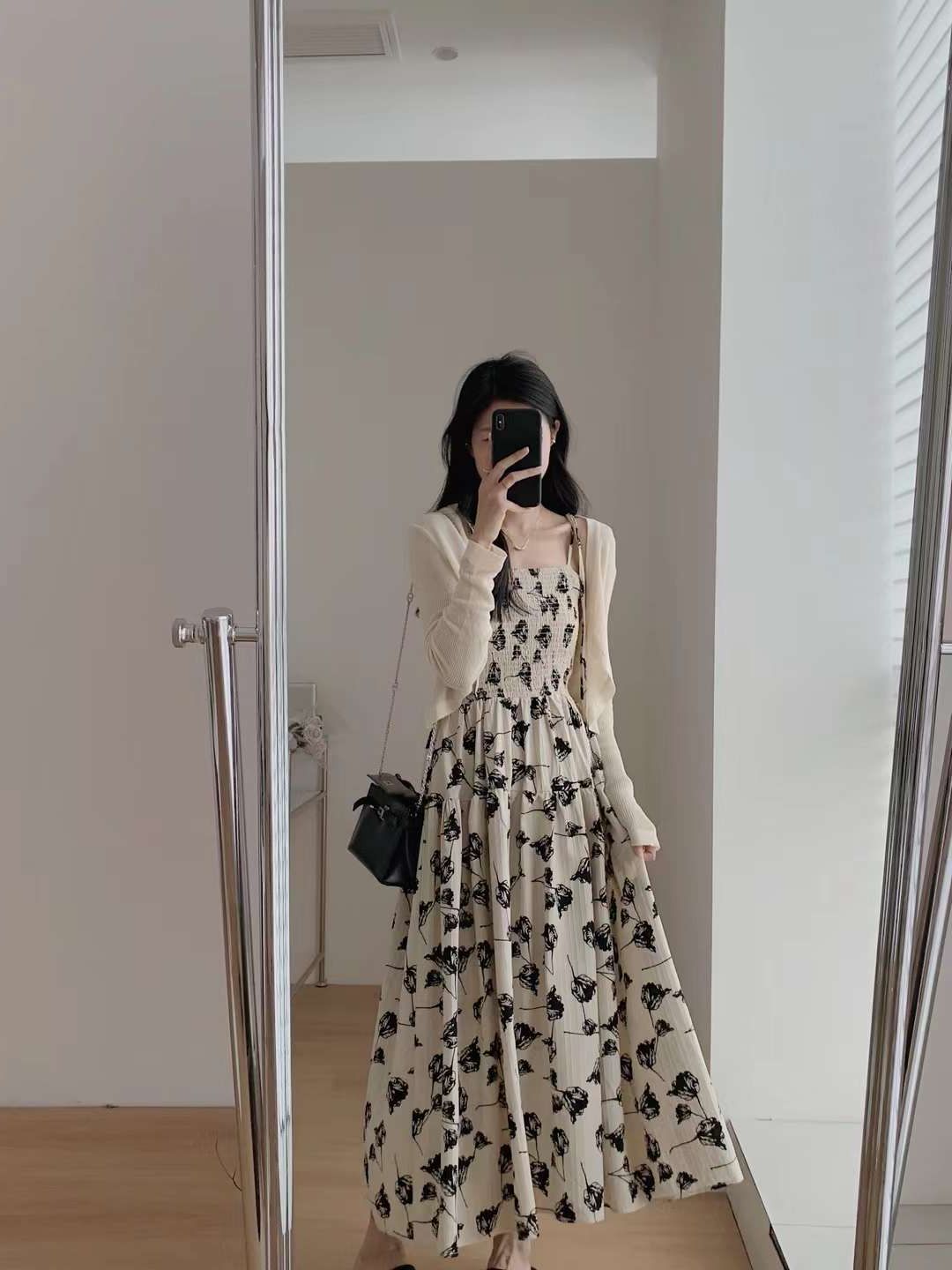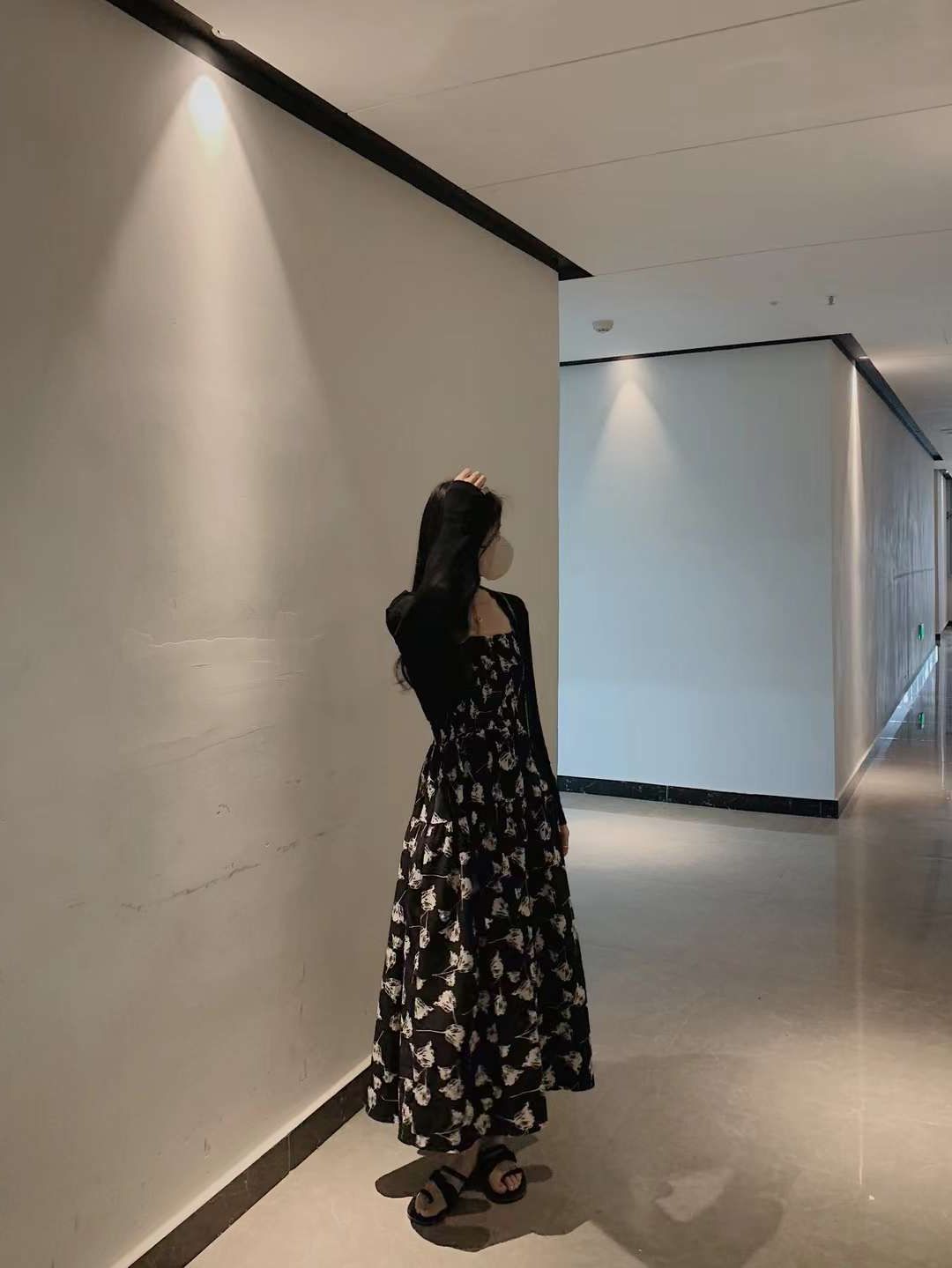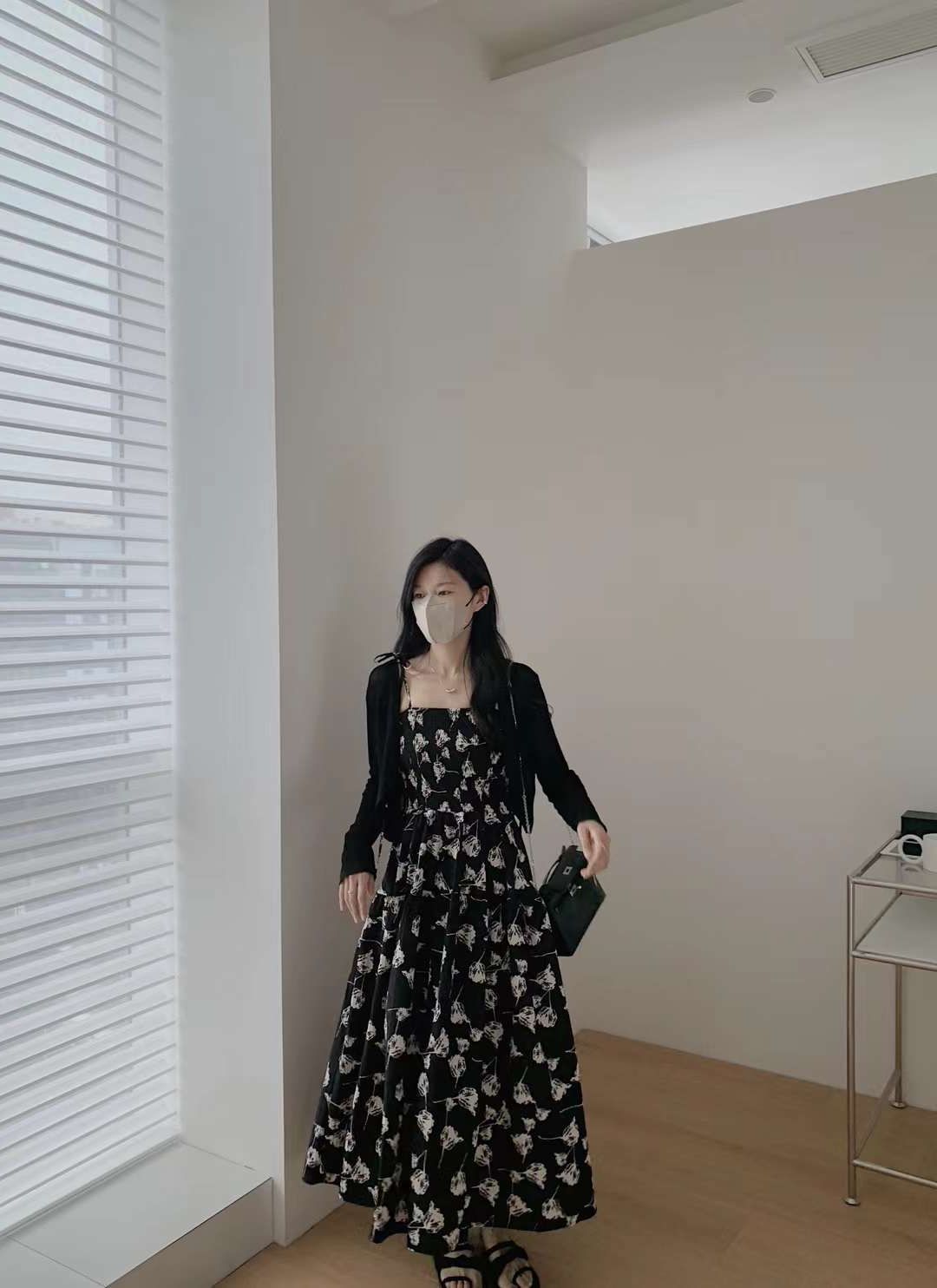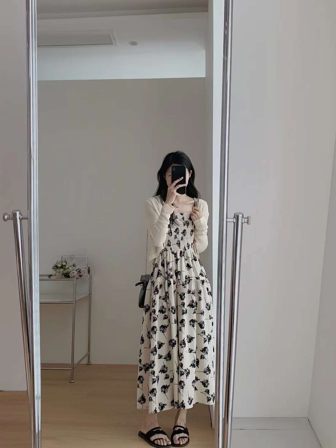 Aiyixuan 차 휴식 프랑스 꽃 슬링 원피스 여자의 여름 고급 기질 슬리밍 세트스토어 가기