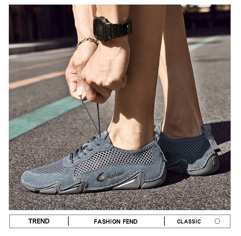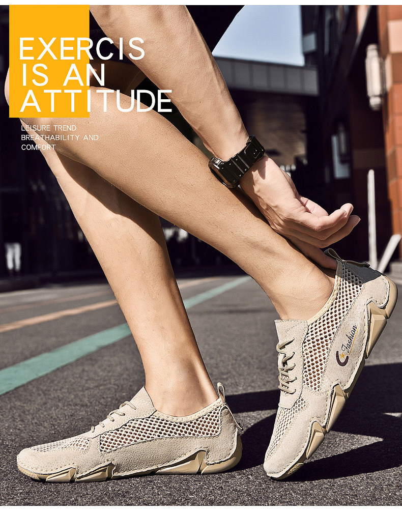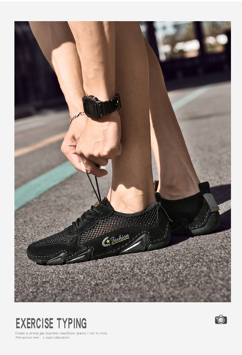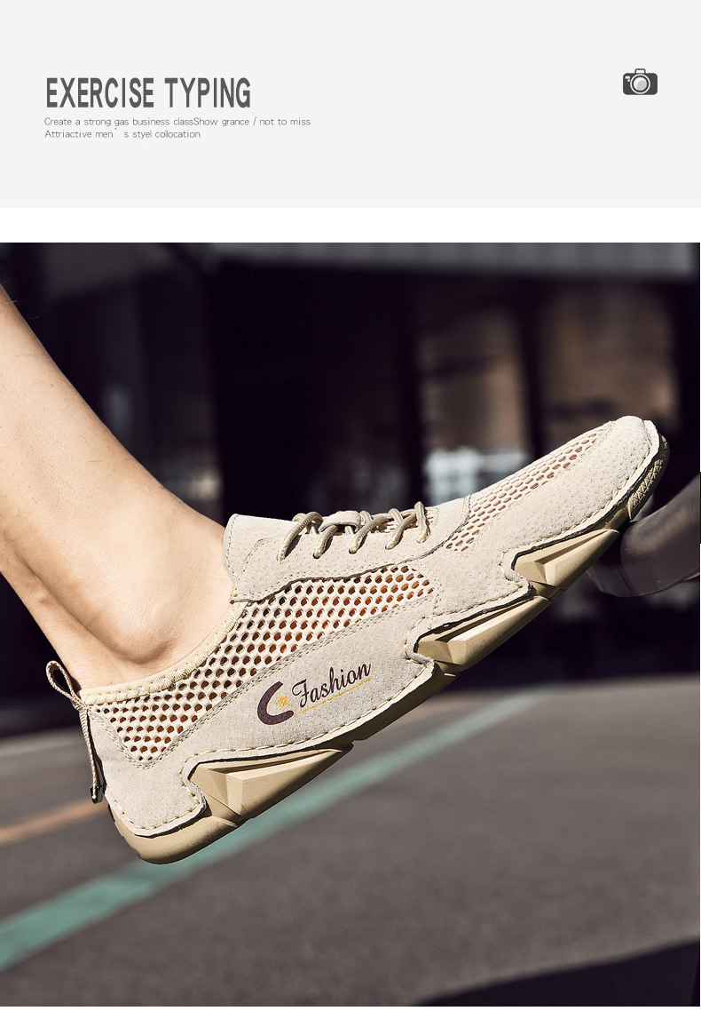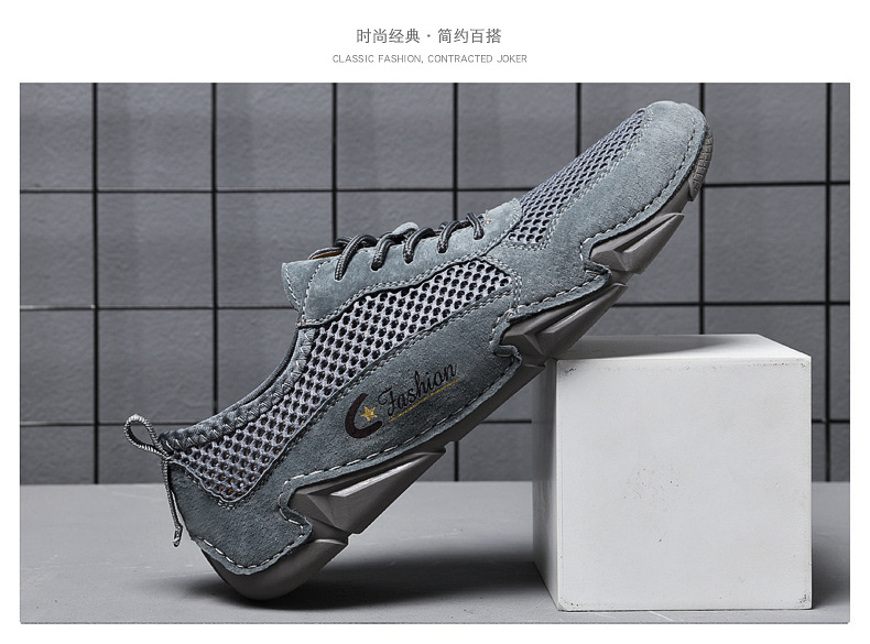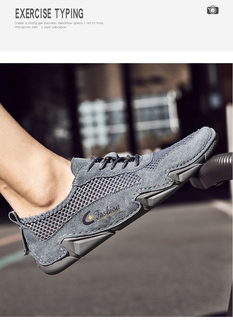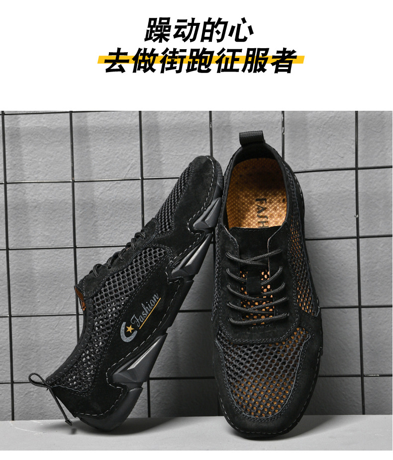 여름 크로스 보더 가죽 남성 캐주얼 스포츠 신발 대형 봉제 가죽 메쉬 신발 Octopus 남성 신발스토어 가기