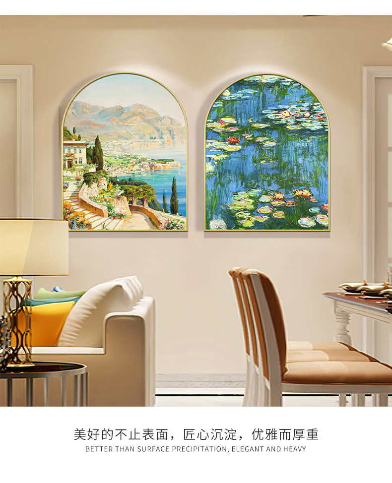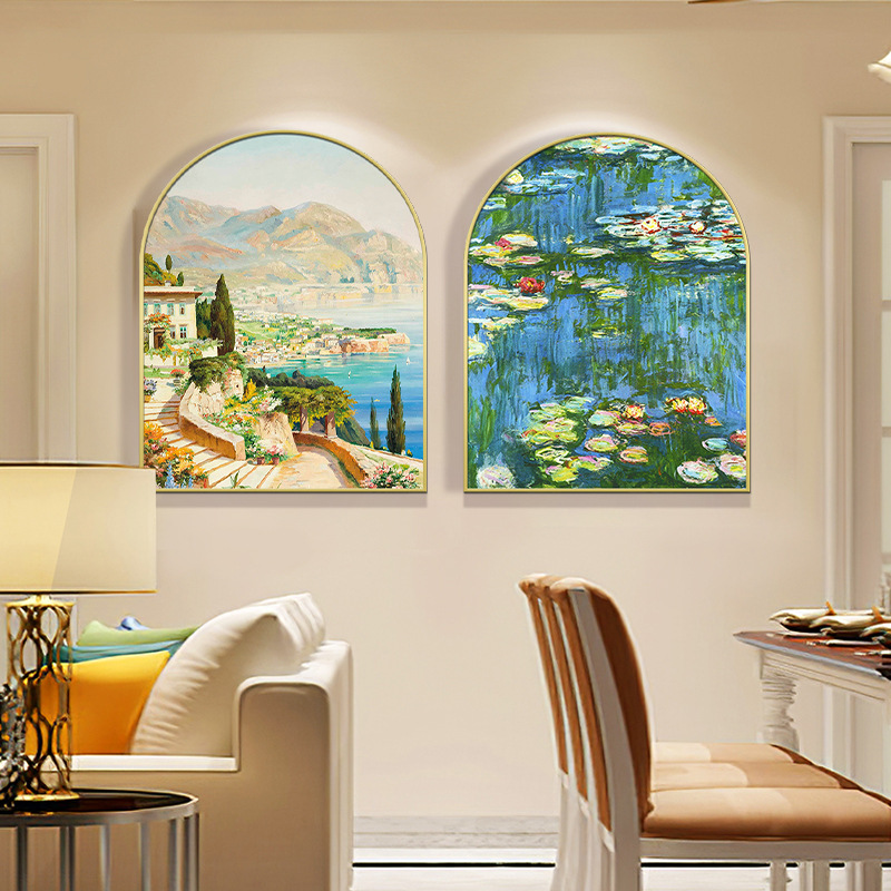 JW 모네 수련 사이드 보드 장식 그림 레스토랑 침실 아치 교수형 그림 빛 럭셔리 프랑스 빈티지 테이블 페인팅스토어 가기