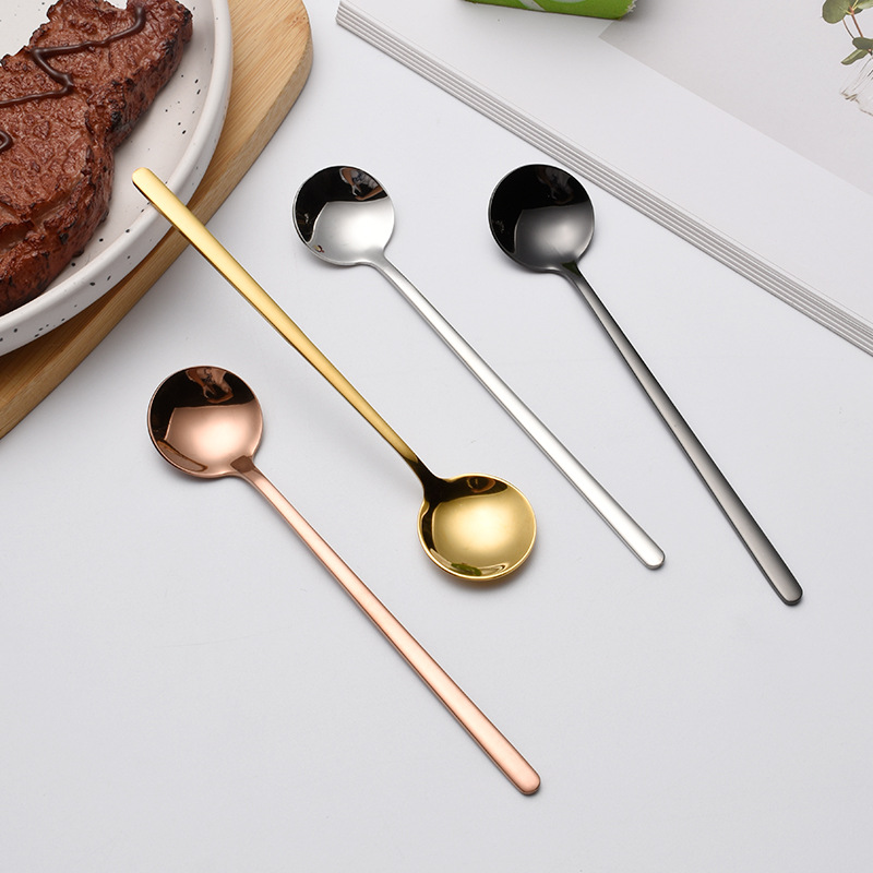 304 스테인레스 스틸 작은 원형 스푼 귀여운 긴 손잡이 믹싱 스푼 미니 크리에이티브 디저트 밀크 티 믹싱 네트 레드 커피 스푼