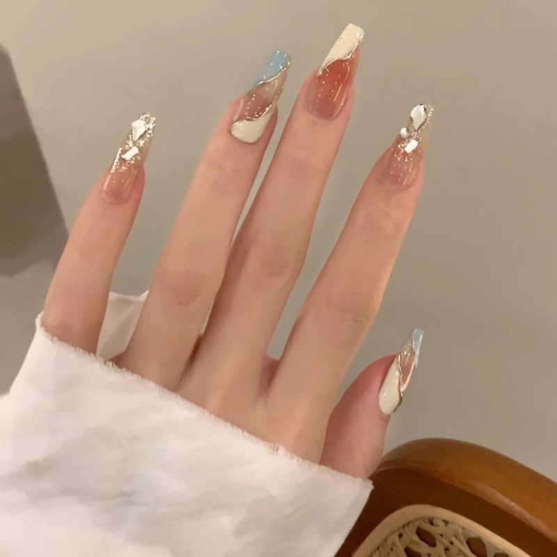 웨어러블 네일 가짜 네일 네일 패치 플래시 실버 다이아몬드 고양이의 눈 돌 나비 웨어러블 완제품 반복 이동식