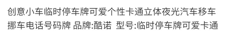 크리에이 티브 카 임시 주차 플레이트 귀여운 성격 만화 입체 발광 자동차 이동 자동차 휴대 전화 번호판