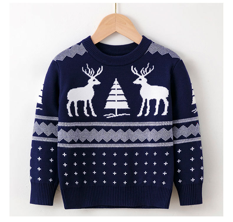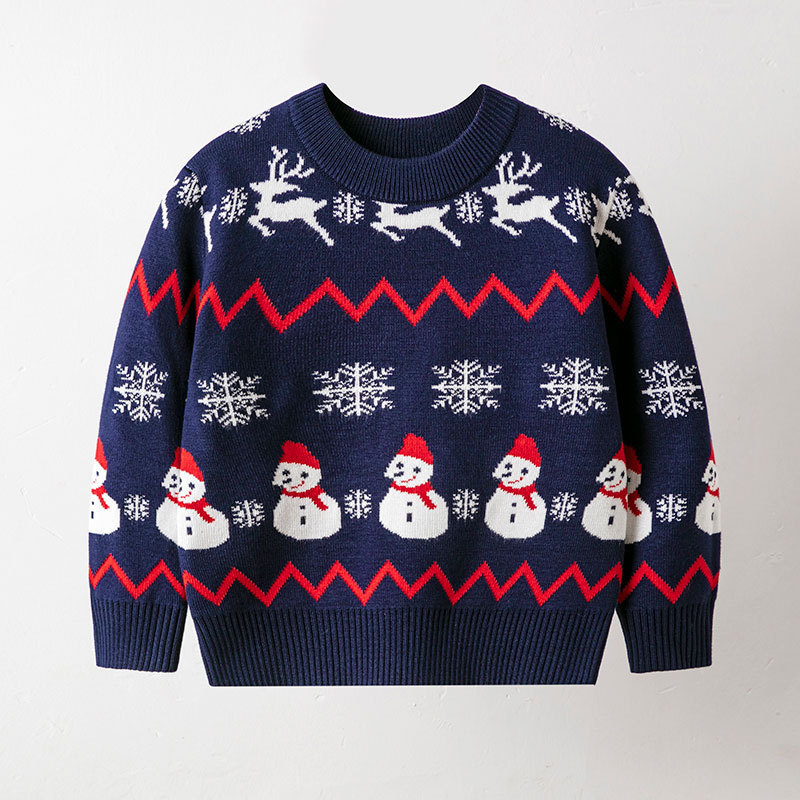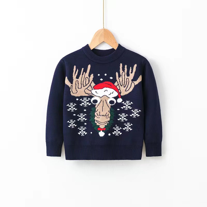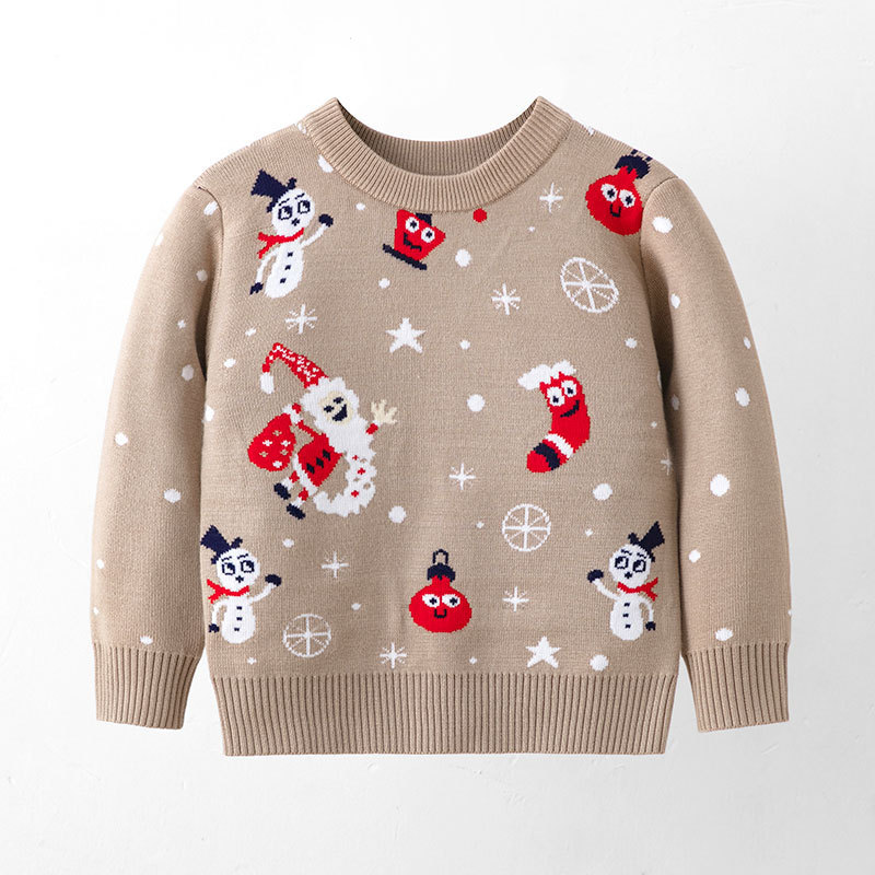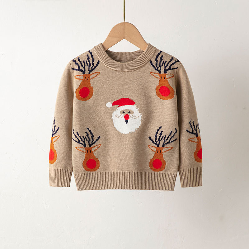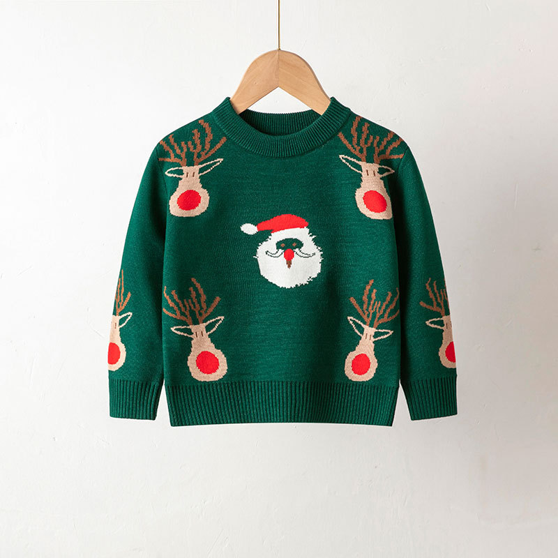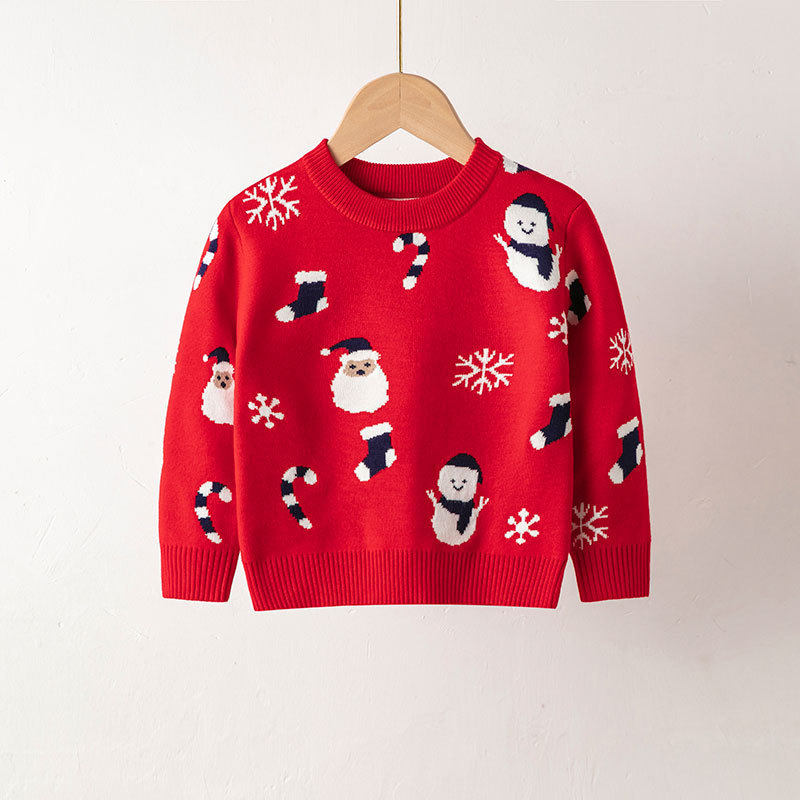 아동복 2024 가을과 겨울 유럽과 미국의 크리스마스 만화 크루 넥 스웨터 어린이 소년 소녀 스트레치 풀오버 스웨터스토어 가기