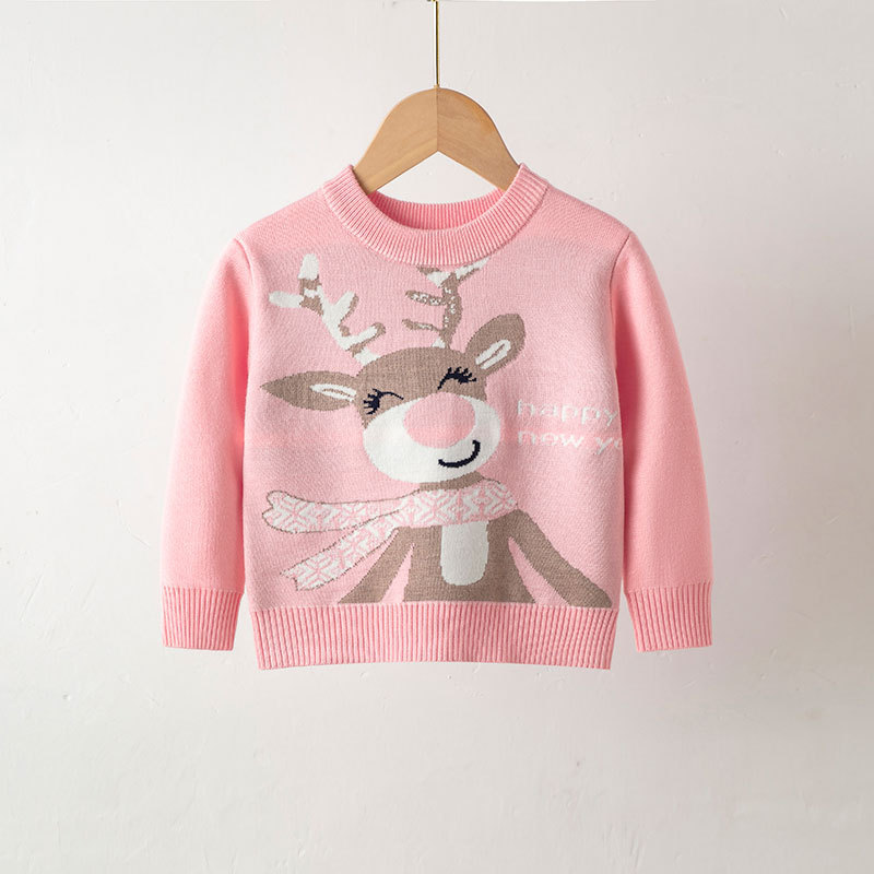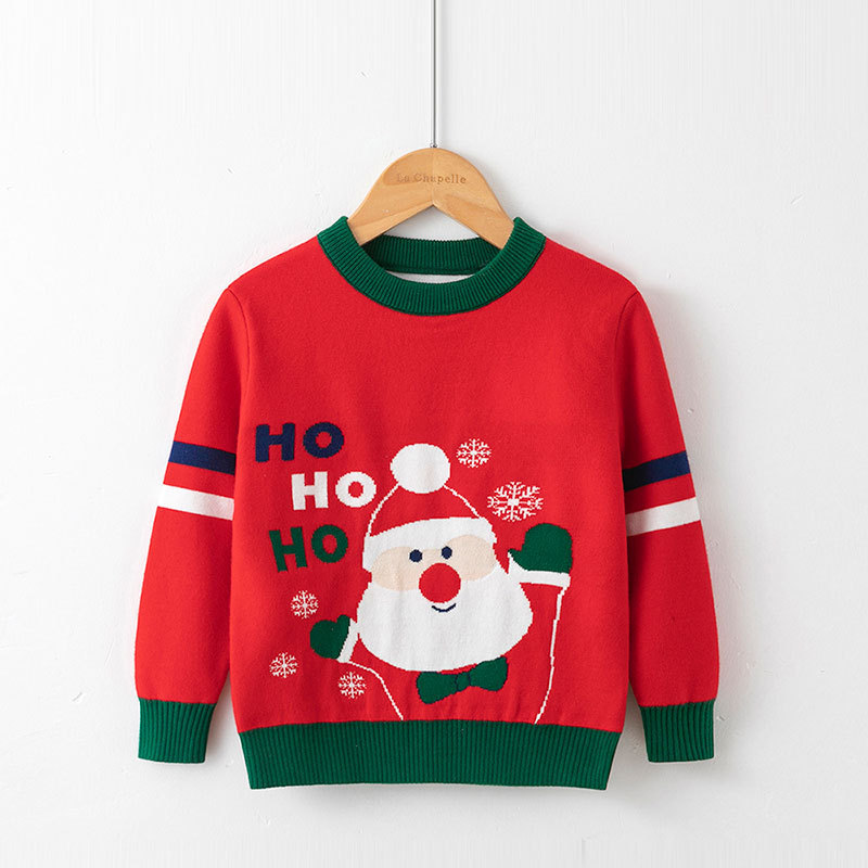 아동복 2024 가을과 겨울 유럽과 미국의 크리스마스 만화 크루 넥 스웨터 어린이 소년 소녀 스트레치 풀오버 스웨터