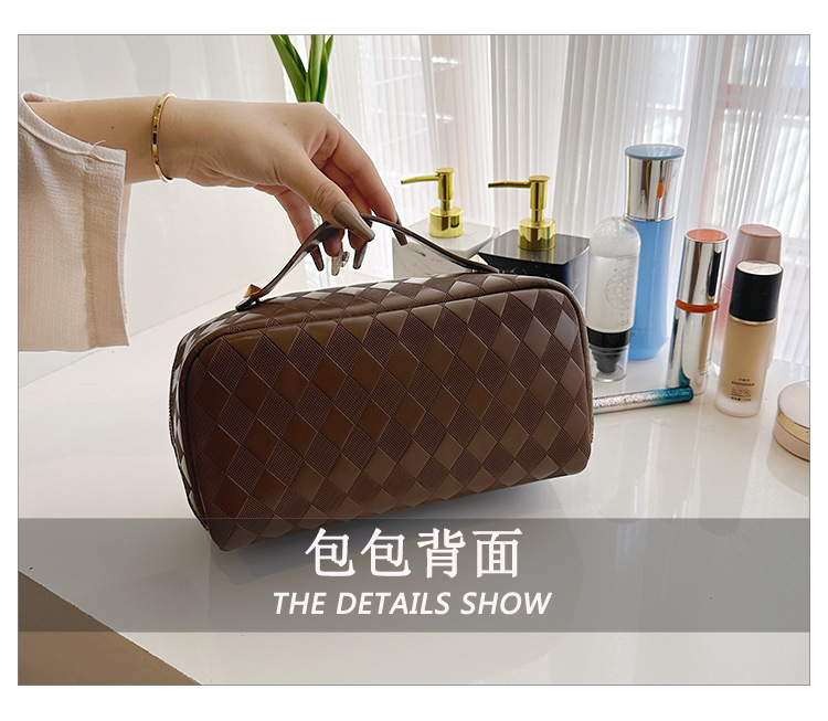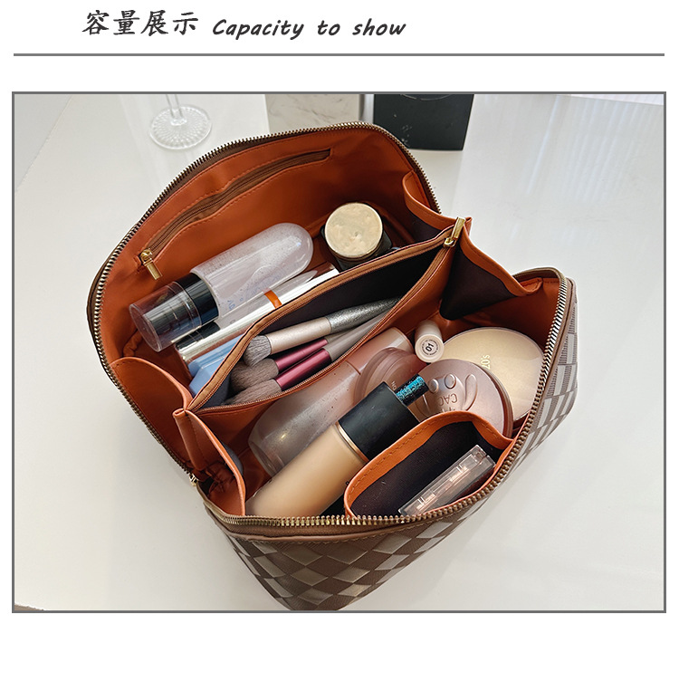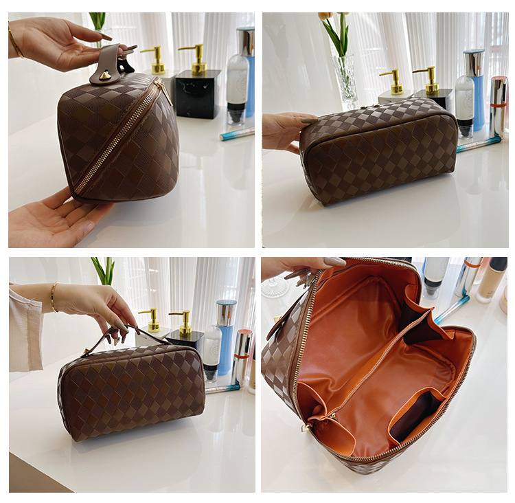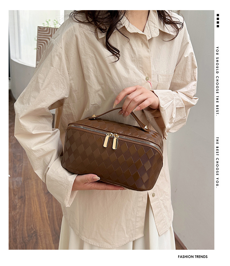 2026년 신형 다이아몬드 패턴 PU 가죽 플랫 메이크업 가방 대용량 화장품 수납 가방 휴대용 세면도구 가방스토어 가기
