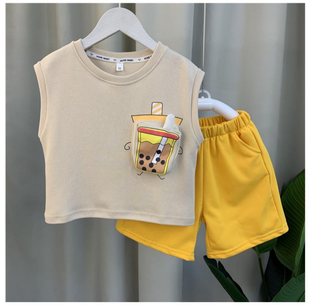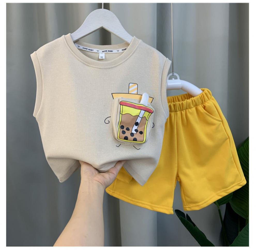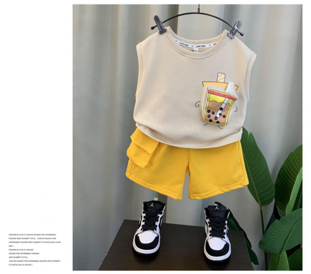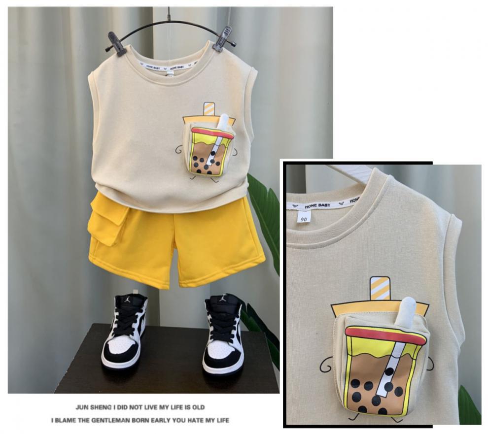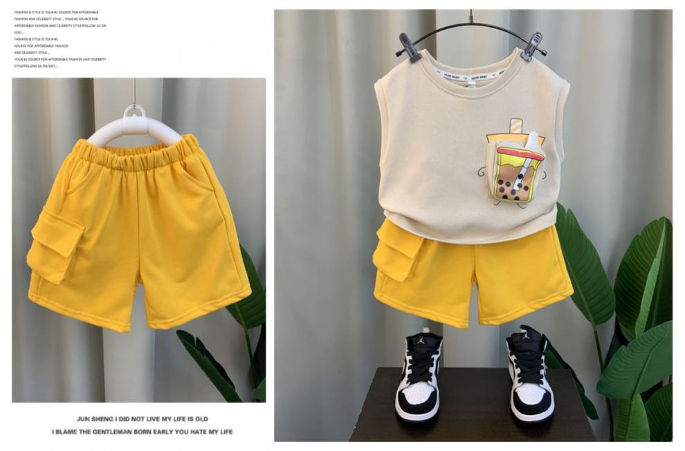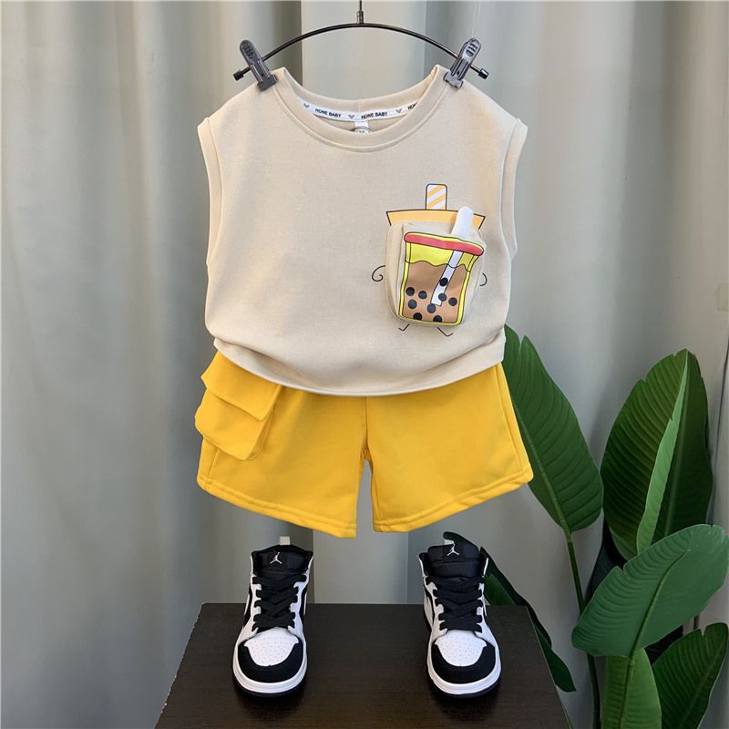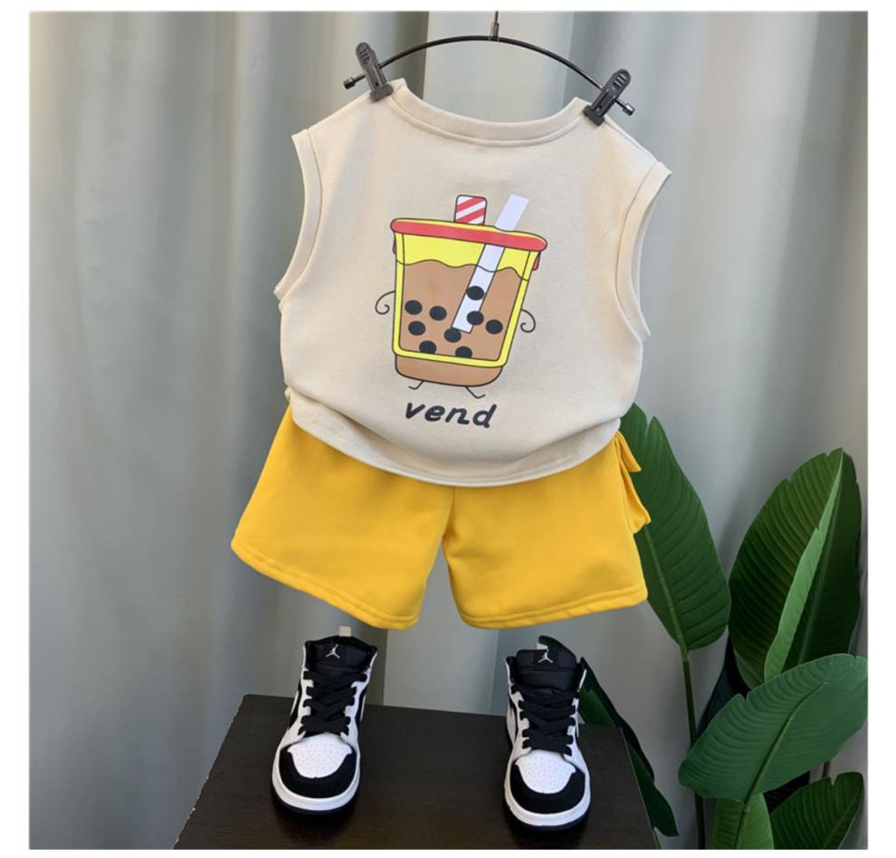 소년 여름 조끼 세트 2023 새로운 외국 스타일 아기 여름 스포츠 반팔 옷 어린이 멋진 아동복스토어 가기
