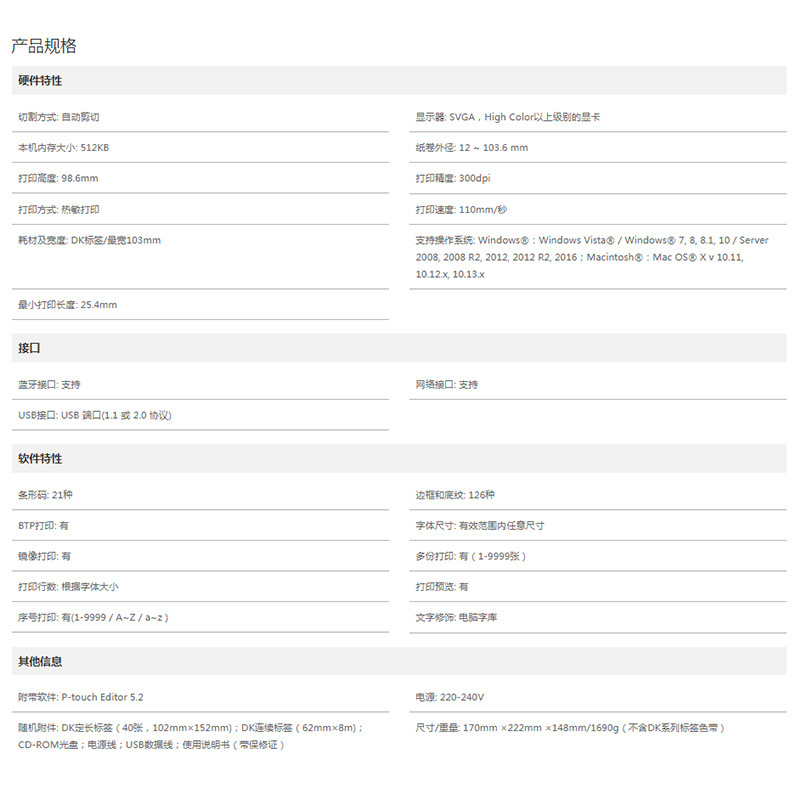 형제 라벨 기계 QL-1110NWB 접착 열 종이 화물 라벨 프린터