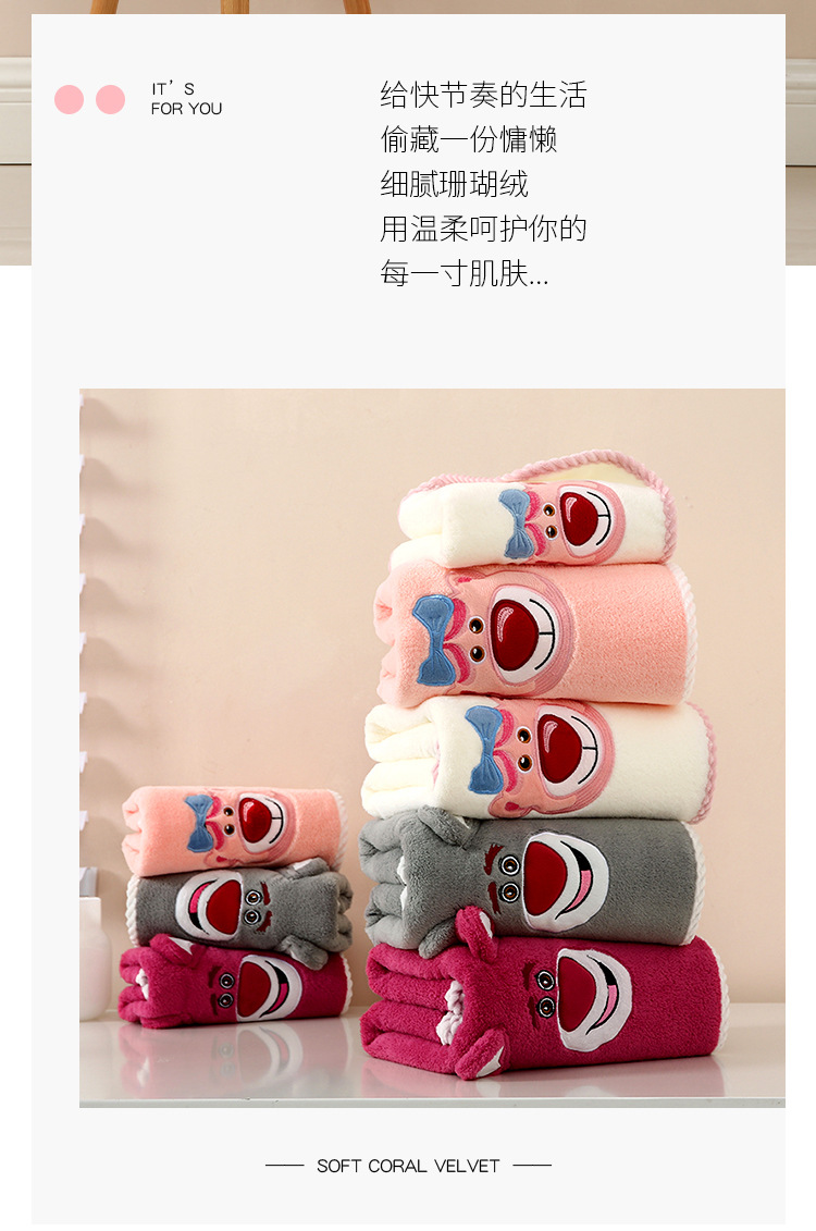 산호 양털 딸기 곰 타월 목욕 타월 도매 만화 귀여운 흡수 가정용 성인 아이 페이스 타월