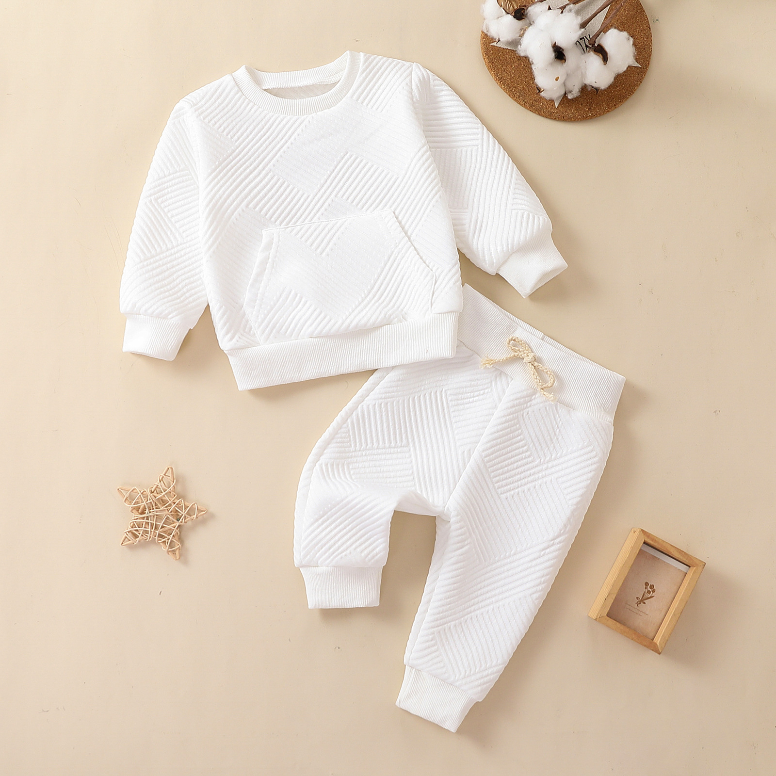 국경 간 유아 중립 소년 소녀 아기 회색 흰색 2 색 긴 소매 세트 YT2325스토어 가기