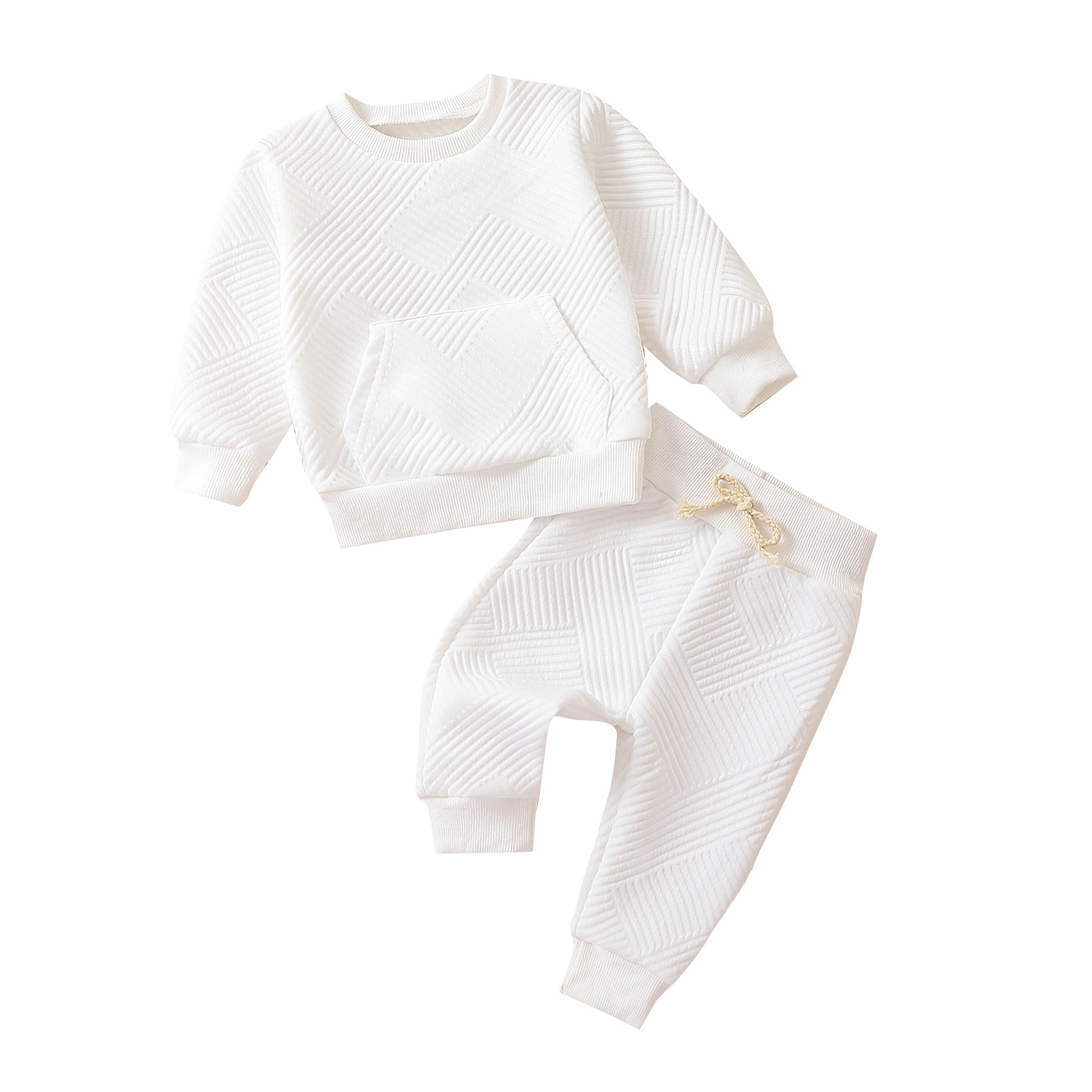 국경 간 유아 중립 소년 소녀 아기 회색 흰색 2 색 긴 소매 세트 YT2325