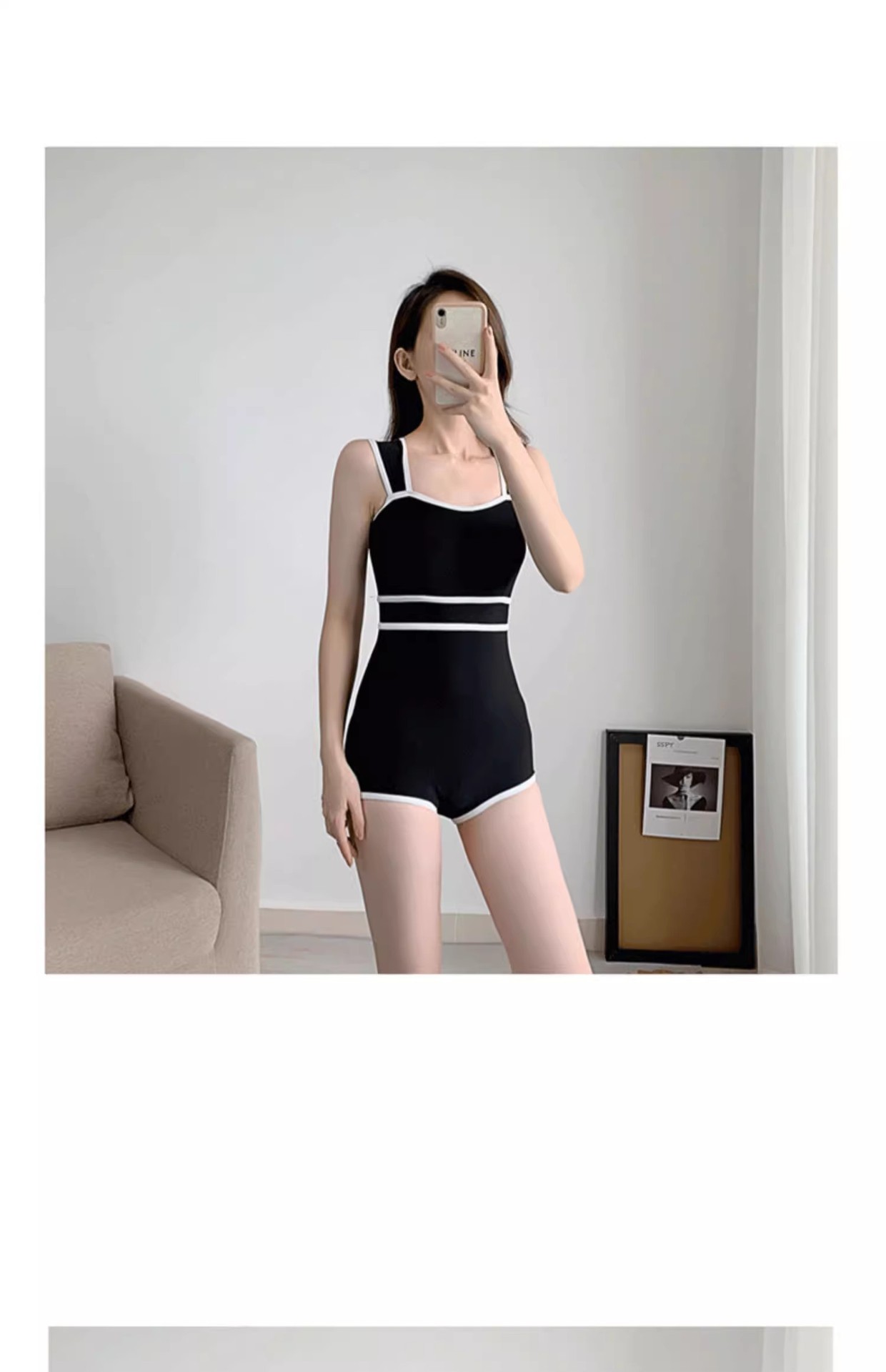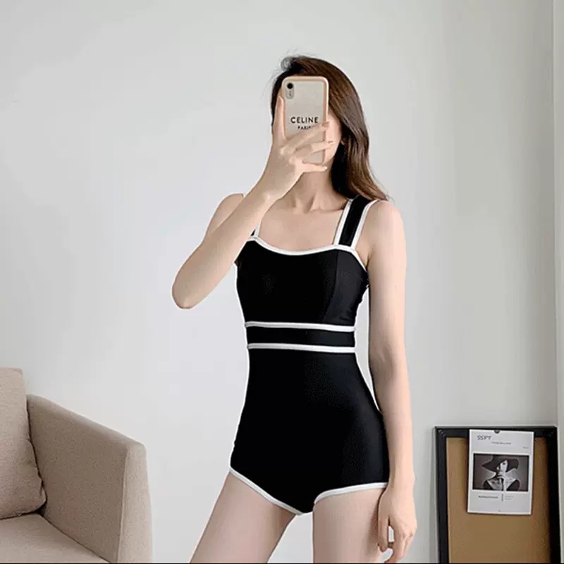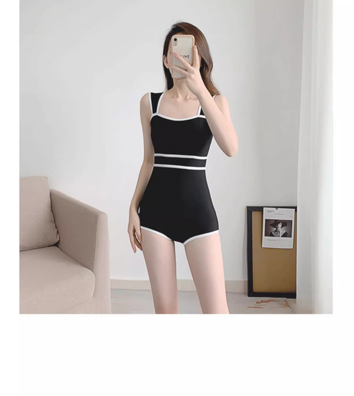 원피스 삼각형 수영복 여성용 온천 2023 새로운 블랙 보수적 인 작은 가슴 푸시 업 슬림 배꼽 커버 고급 수영복스토어 가기