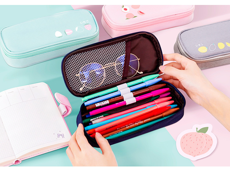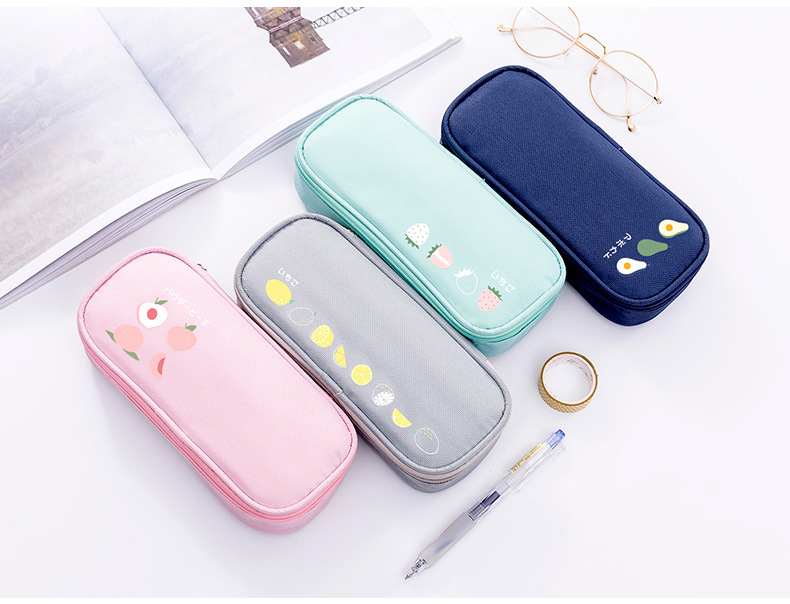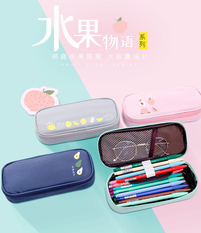 크리에이 티브 만화 과일 연필 가방 맞춤 로고 초등학교 문구 상자 고가치 대용량 연필 가방 도매스토어 가기