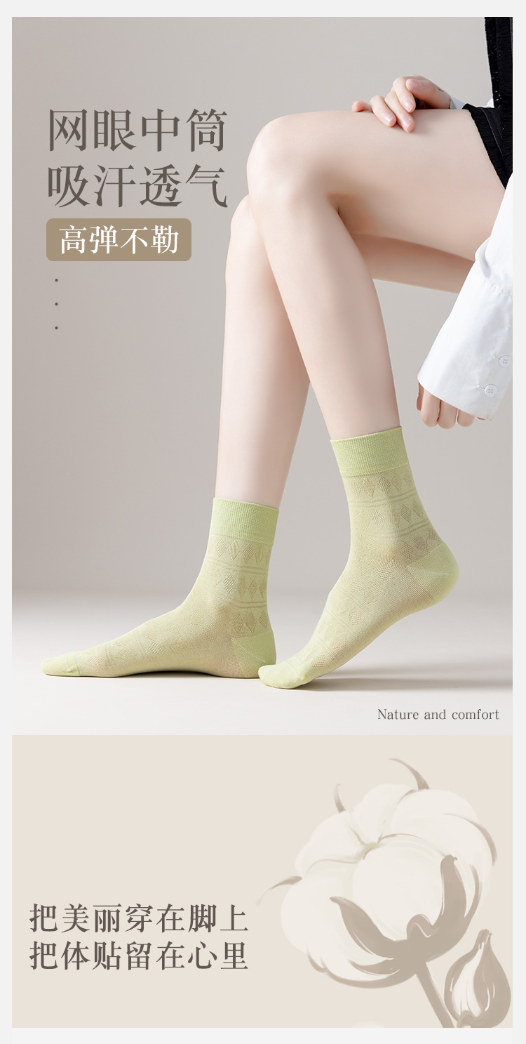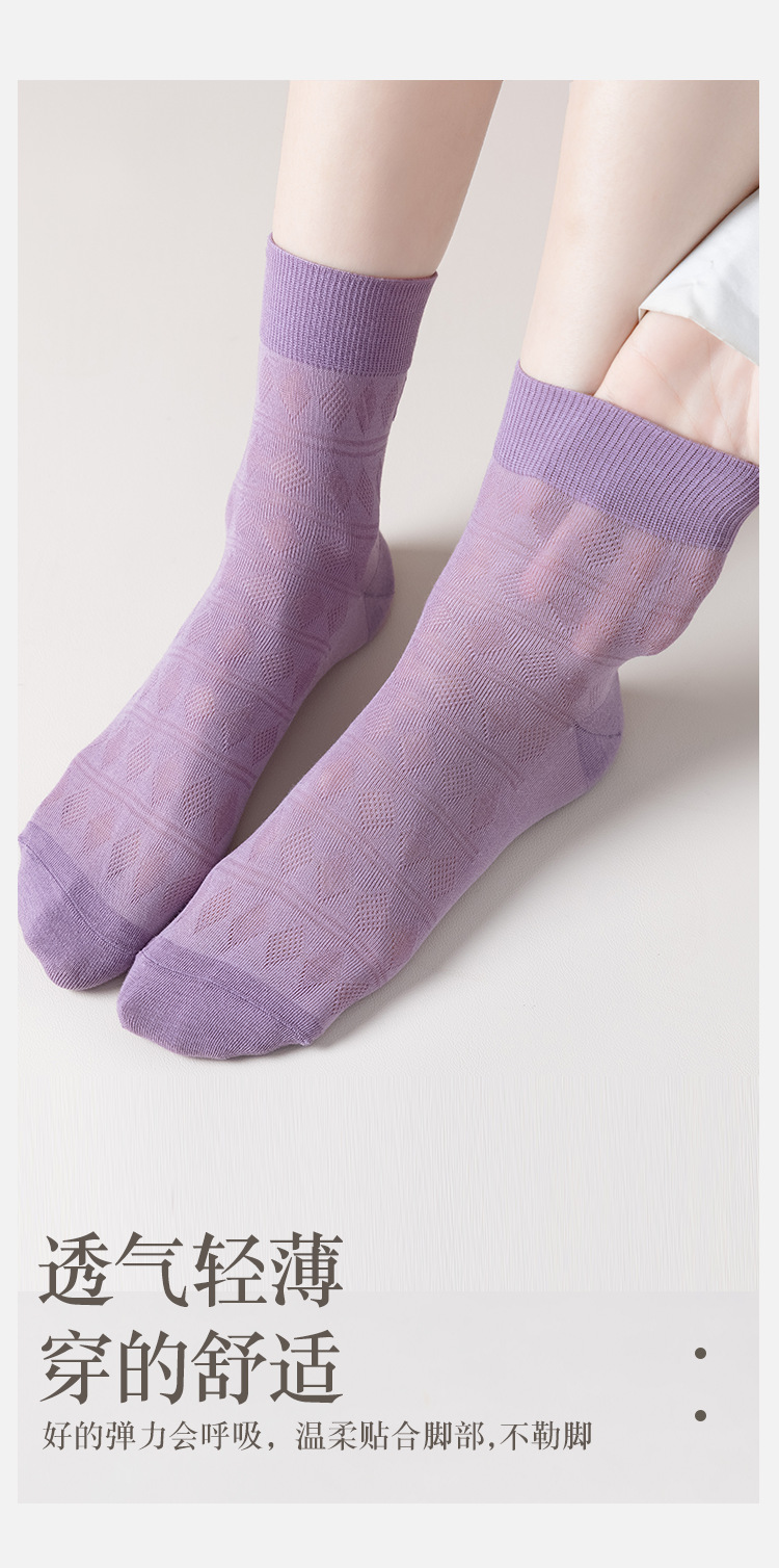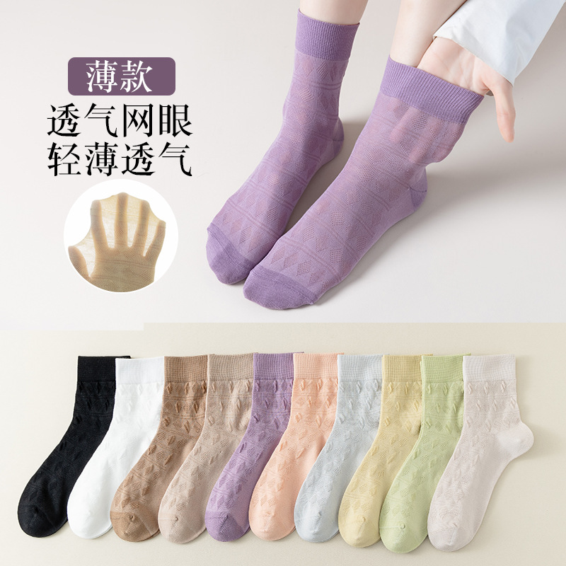 여성용 양말 여름 솔리드 컬러 메쉬 양말 얇은 올인원 캔디 컬러 파일 양말 땀 흡수 통기성 스타킹 코튼스토어 가기