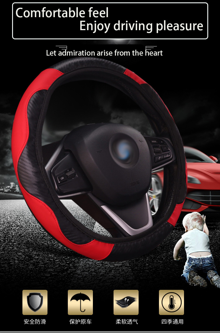 국경 간 전자 상거래 폭발 내부 링 탄성 탄소 섬유 가죽이없는 자동차 핸들 커버 사계절 유니버설 핸들 커버 도매
