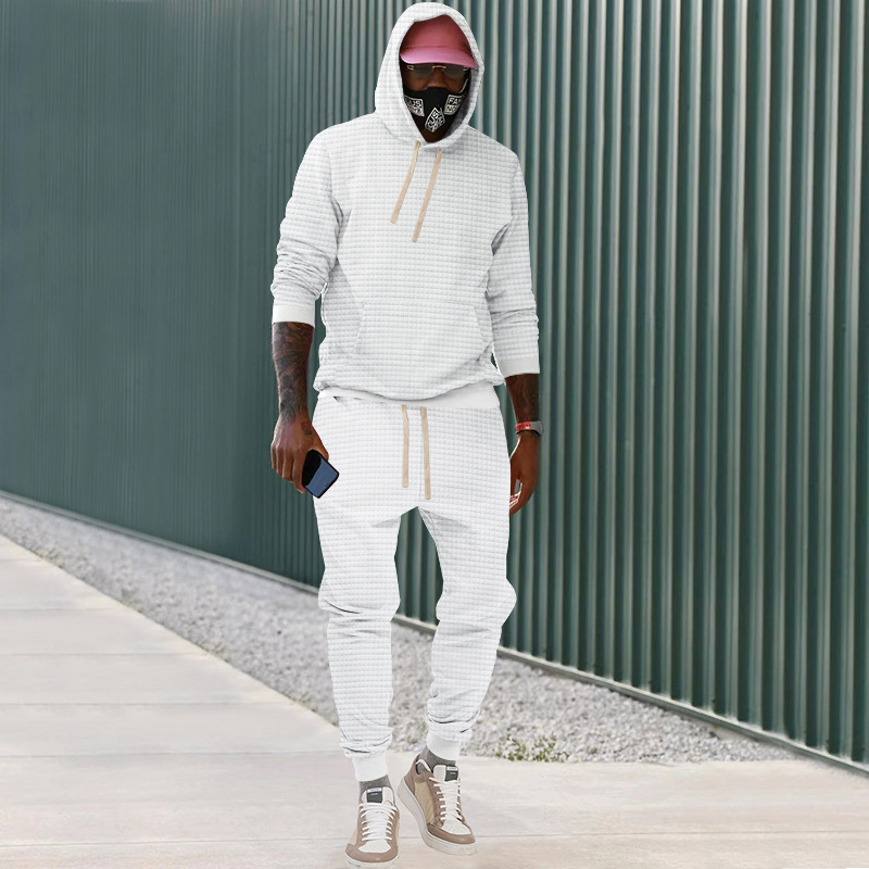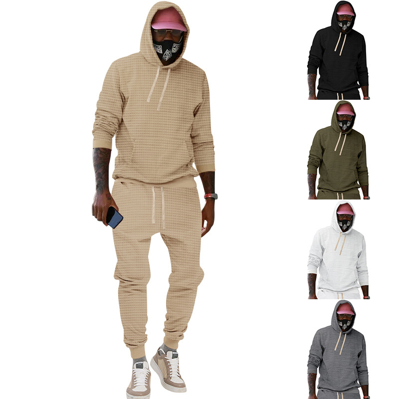 2023 크로스 보더 아마존 봄과 가을 남자 자카드 후드 세트 남자의 유럽과 미국 레저 스포츠 세트 남성