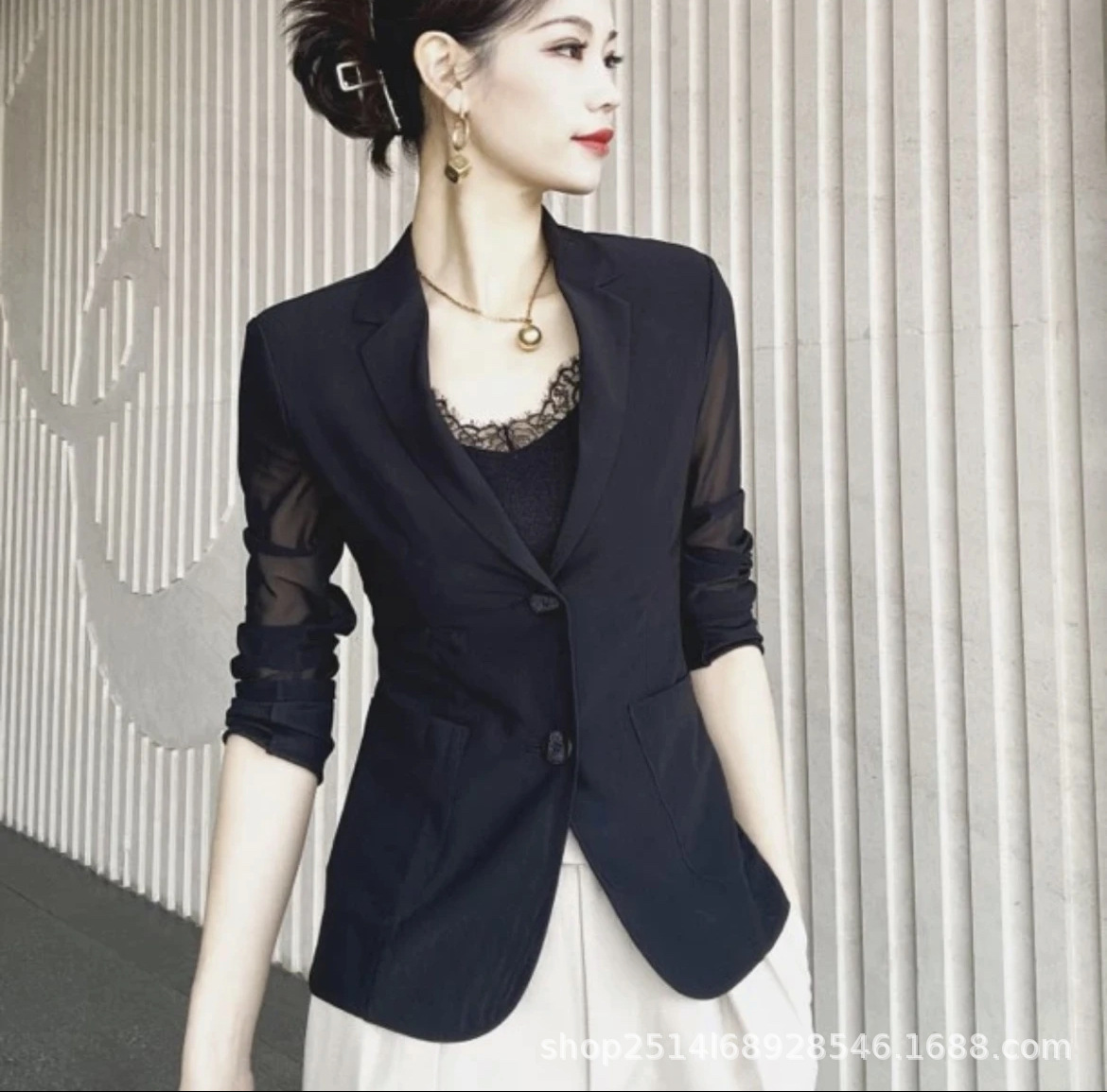 브라더스 쇼핑몰 새로운 2023 여름 패션 얇은 자외선 차단제 슬림핏 꽉 허리 메쉬 스티칭 원근법 세트 재킷