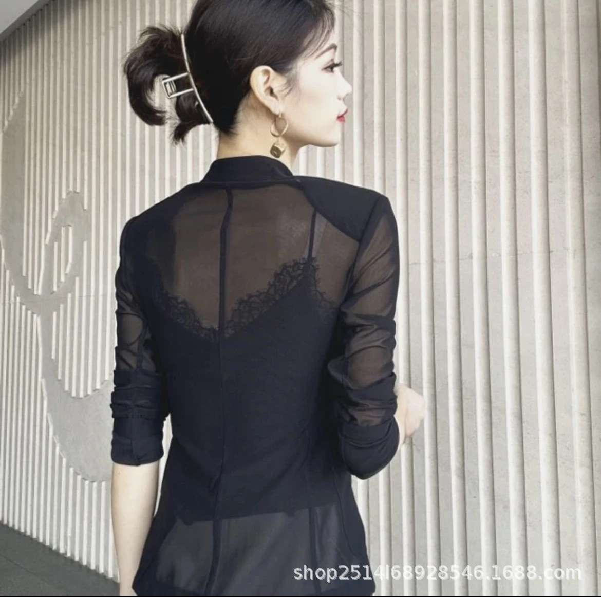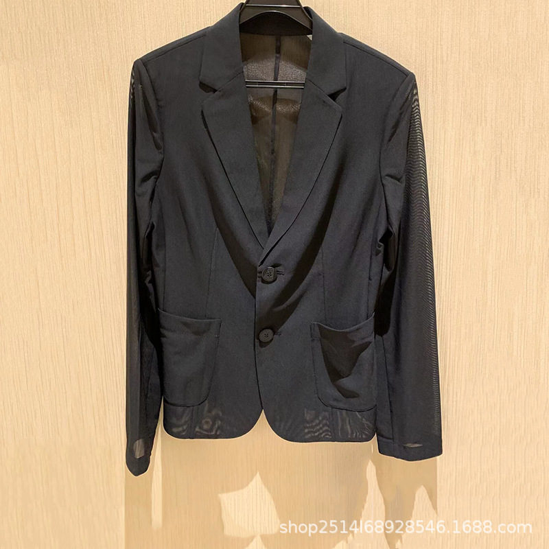 브라더스 쇼핑몰 새로운 2023 여름 패션 얇은 자외선 차단제 슬림핏 꽉 허리 메쉬 스티칭 원근법 세트 재킷스토어 가기