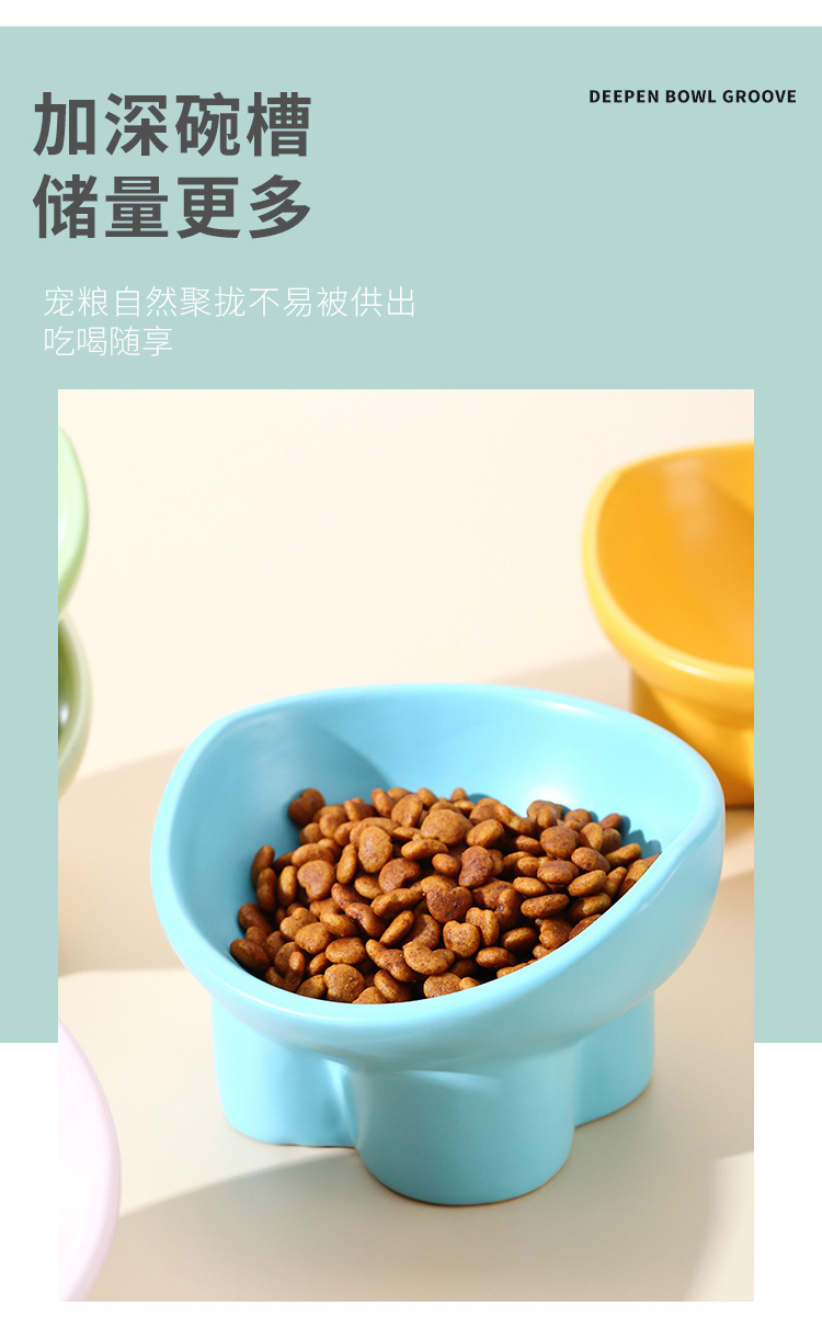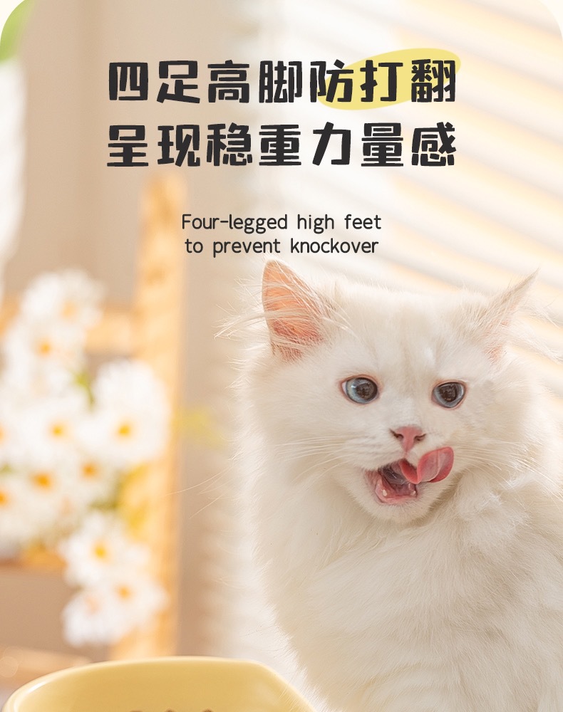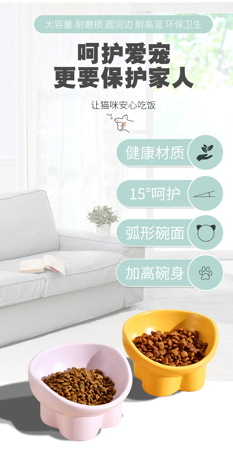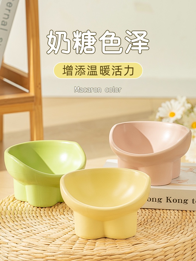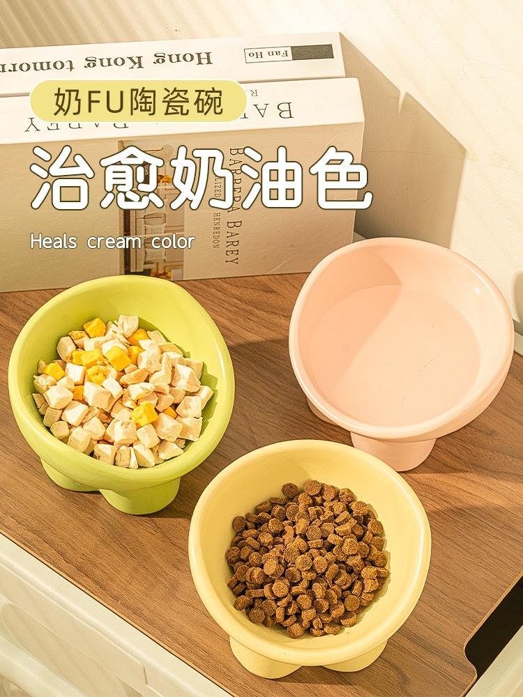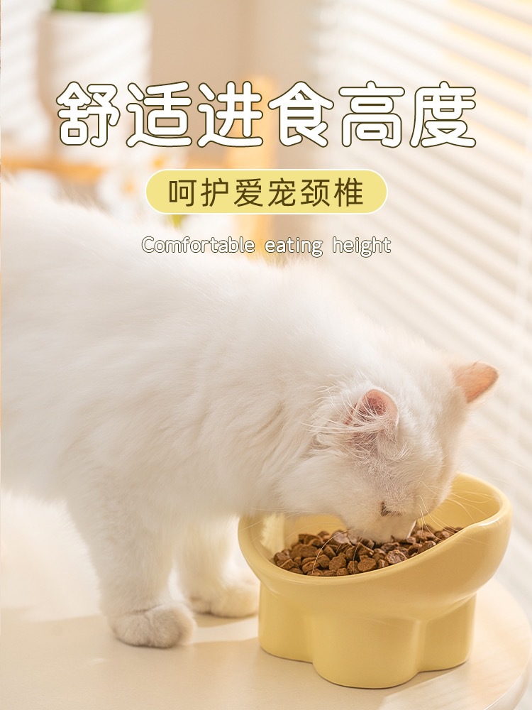 고양이 밥그릇 세라믹 넘어짐 방지 높은 받침대 경사형 그릇 고양이 사료 그릇 고양이 물그릇 고양이 밥그릇 목 보호 강아지 밥그릇스토어 가기