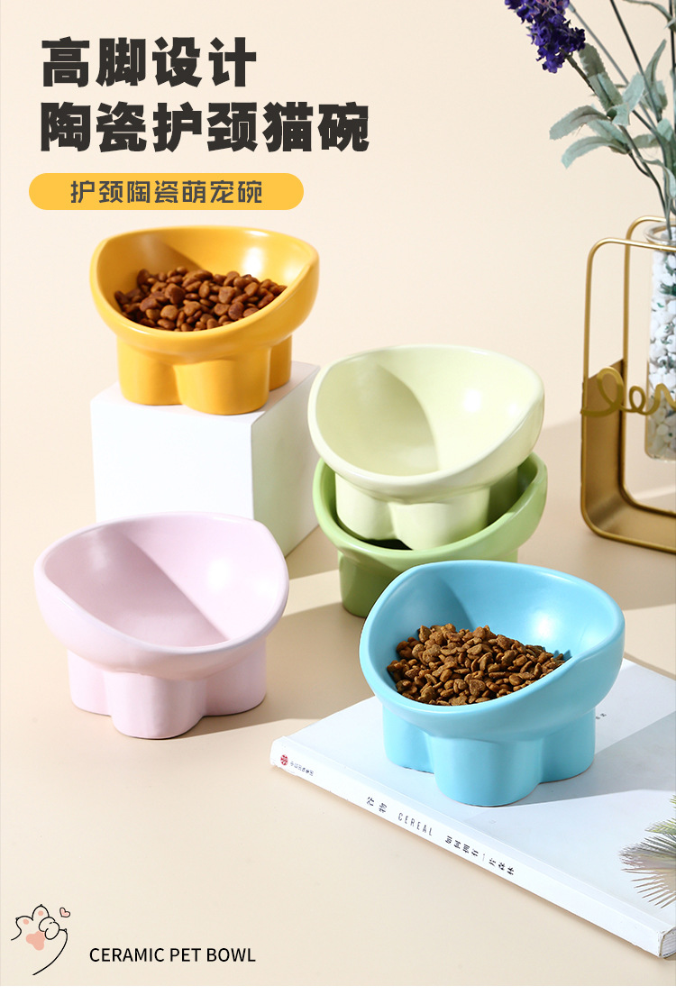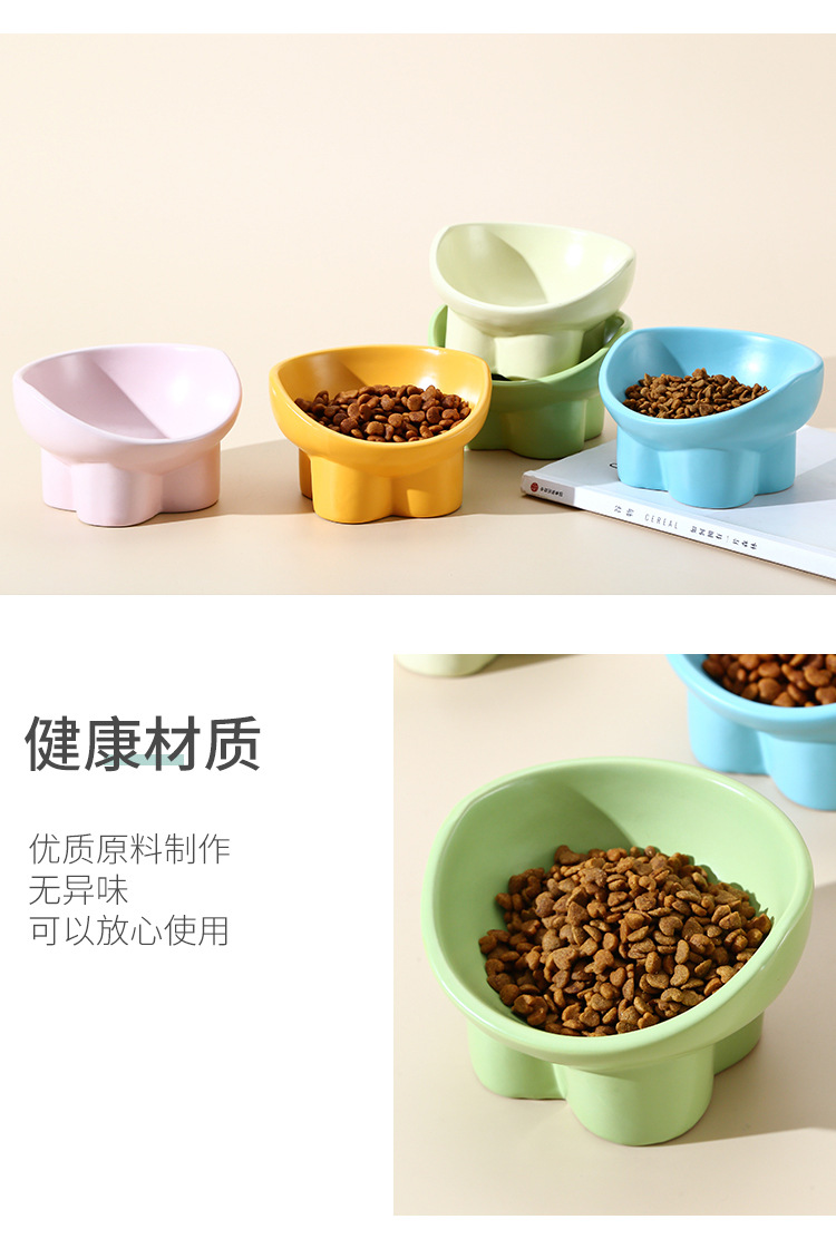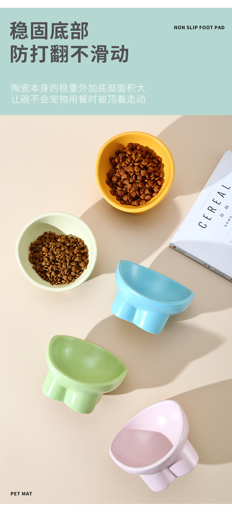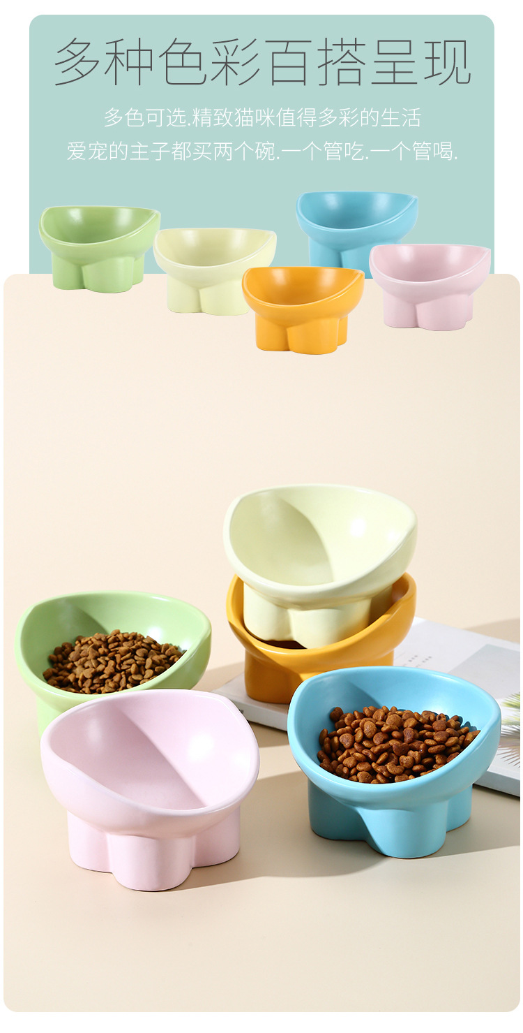 고양이 밥그릇 세라믹 넘어짐 방지 높은 받침대 경사형 그릇 고양이 사료 그릇 고양이 물그릇 고양이 밥그릇 목 보호 강아지 밥그릇