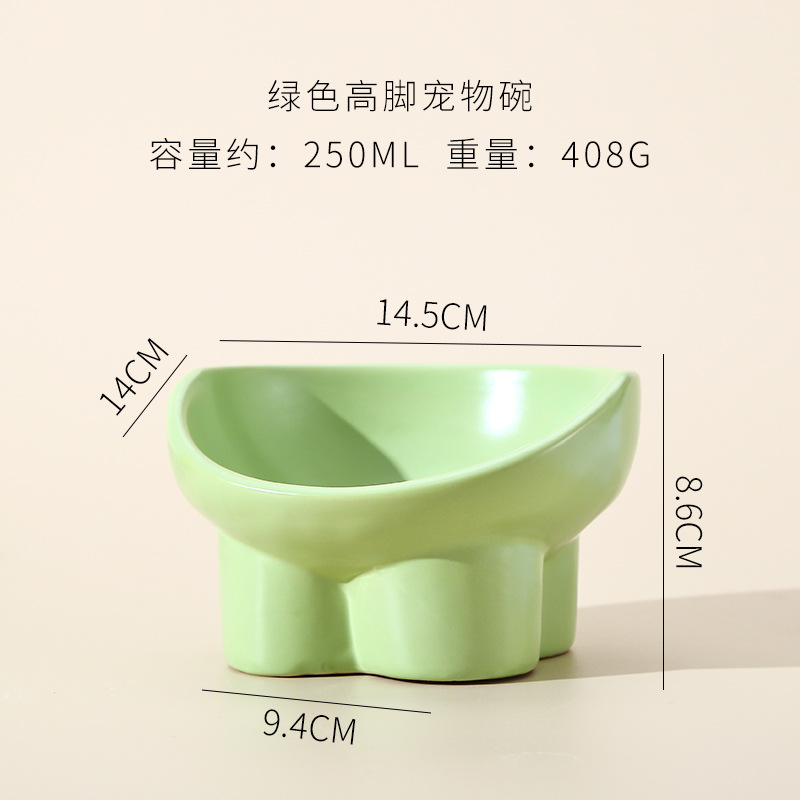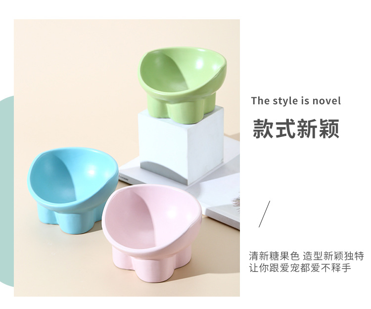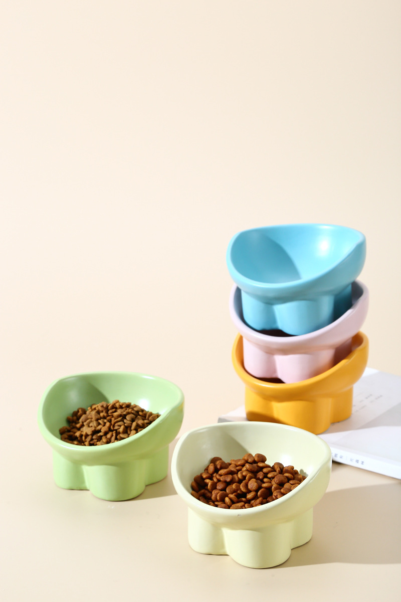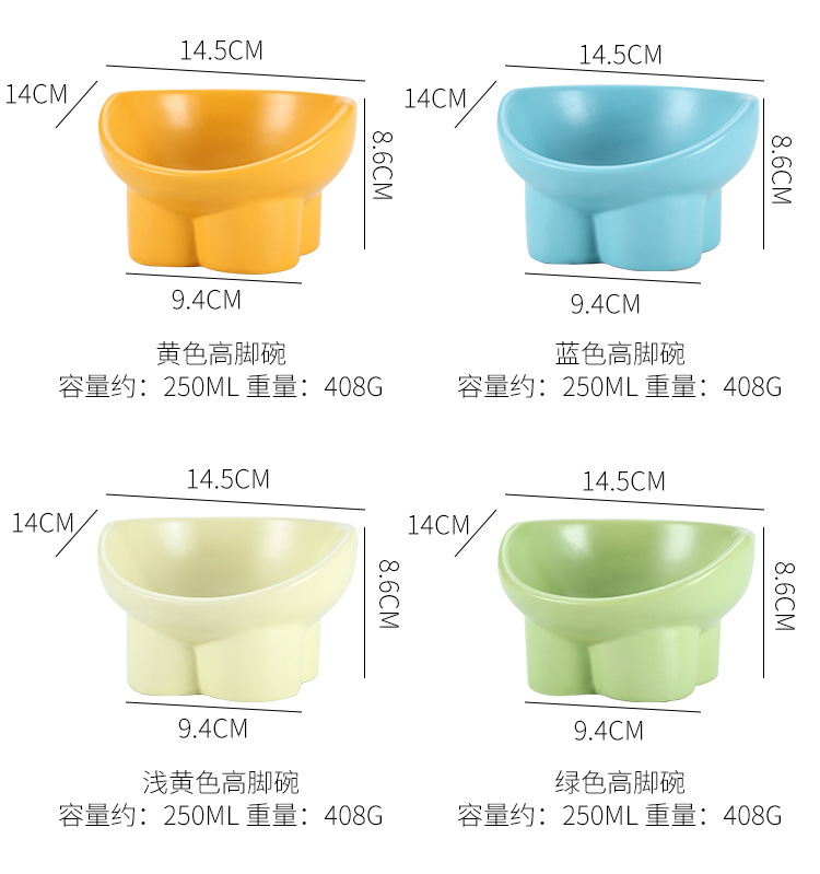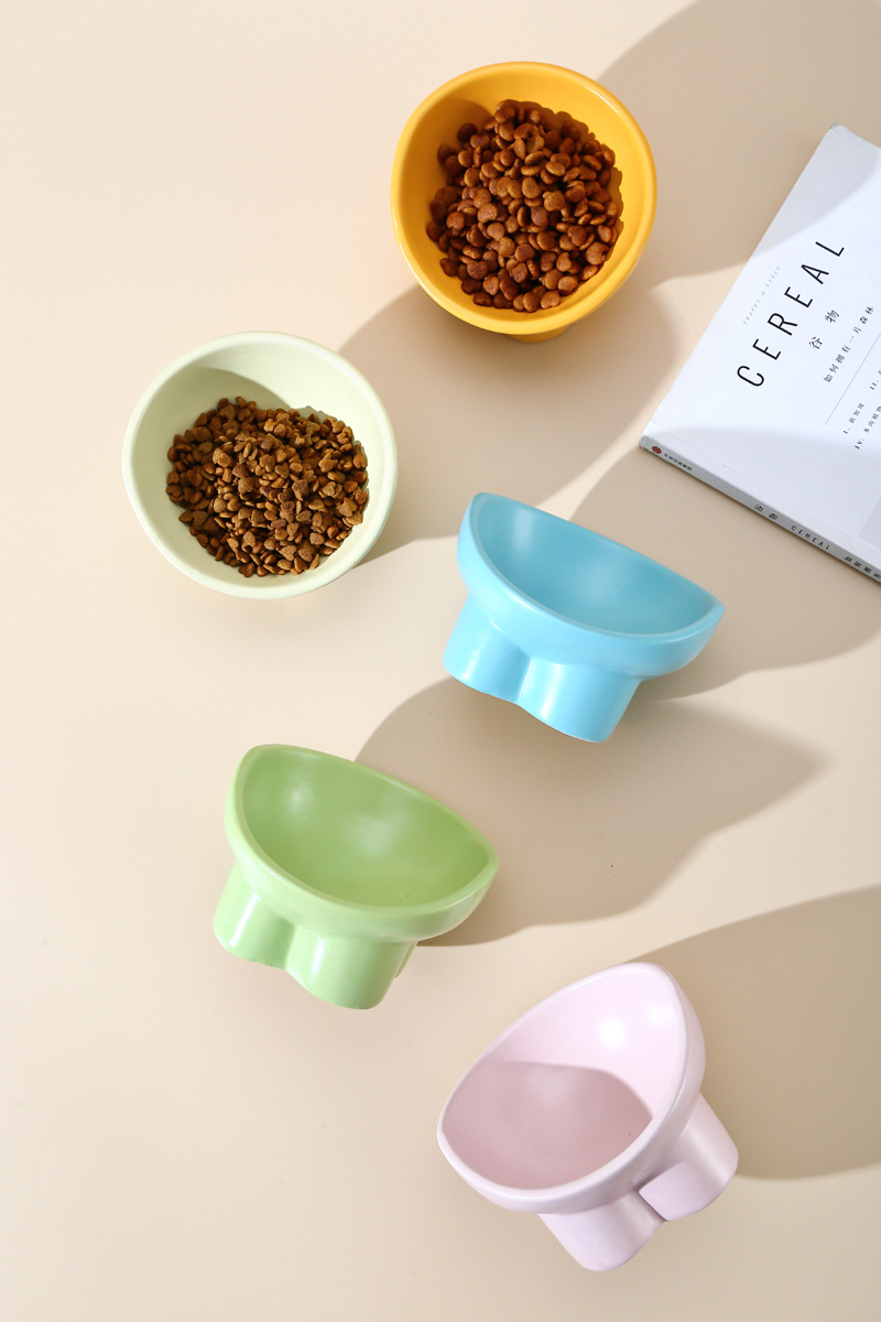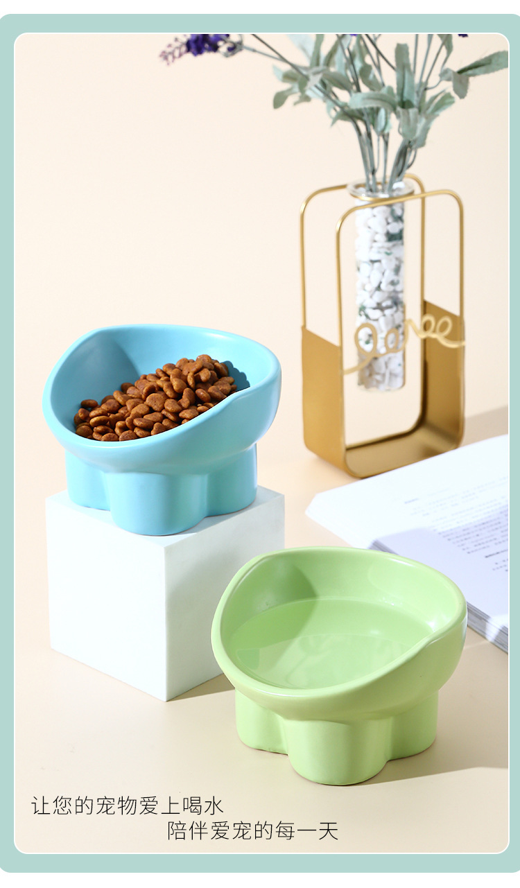 고양이 밥그릇 세라믹 넘어짐 방지 높은 받침대 경사형 그릇 고양이 사료 그릇 고양이 물그릇 고양이 밥그릇 목 보호 강아지 밥그릇