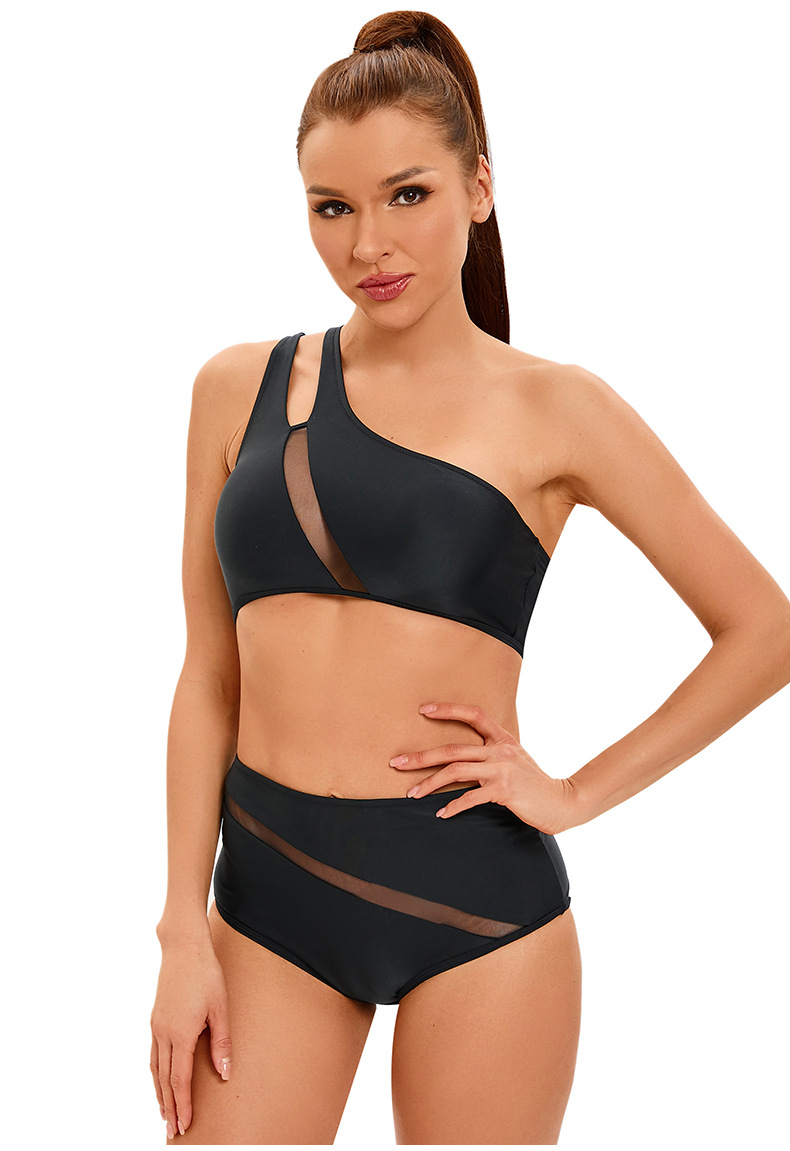 2023 아마존 크로스 보더 새로운 유럽과 미국 섹시 스플릿 수영복 여성용 어깨 단색 메쉬 스티칭 수영복 도매스토어 가기