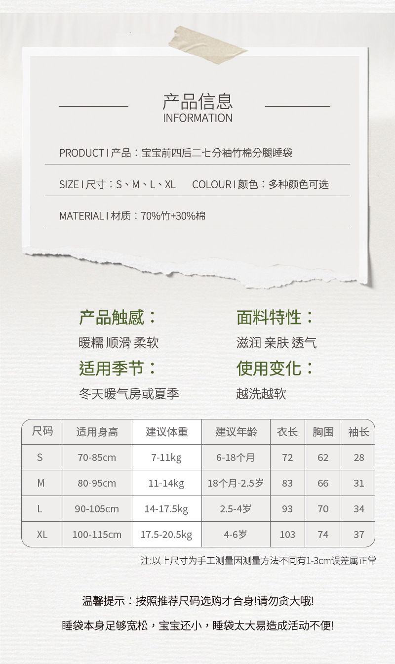 앞 4 뒤 2 개 7 소매 대나무 면 다리 침낭 아기 거즈 침낭 아기 침낭 봄과 여름 A 카테고리스토어 가기