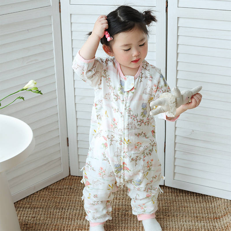 앞 4 뒤 2 개 7 소매 대나무 면 다리 침낭 아기 거즈 침낭 아기 침낭 봄과 여름 A 카테고리