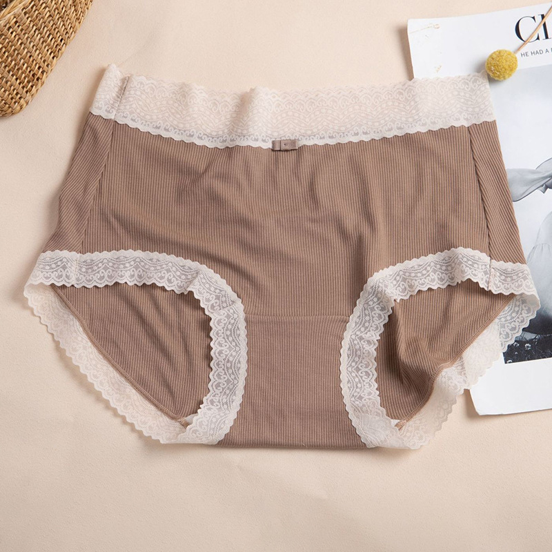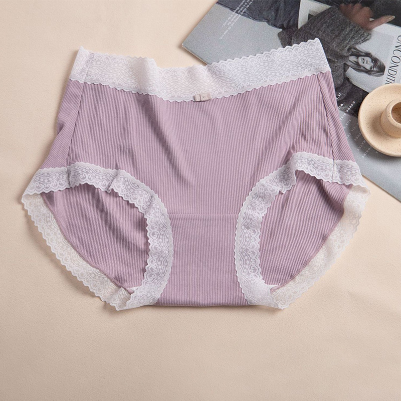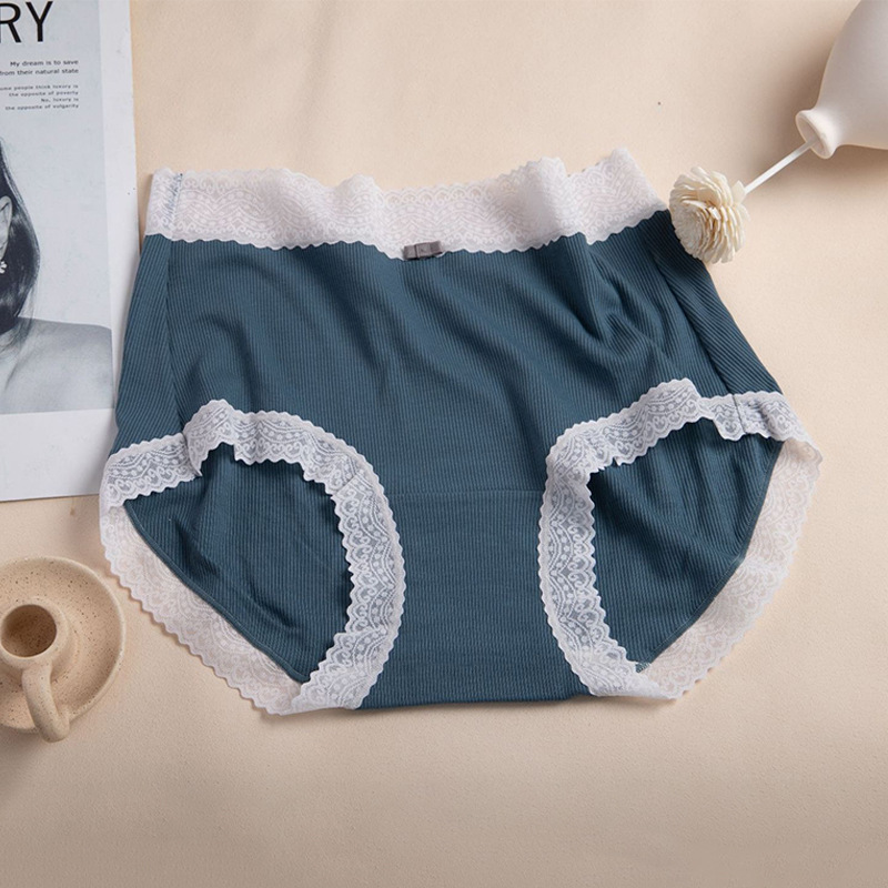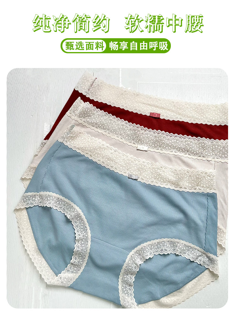 Xiaolan 스커트 3099 일본 미드 웨이스트 레이스 얇은 실 면 여성 단색 속옷 통기성 면 가랑이 팬티