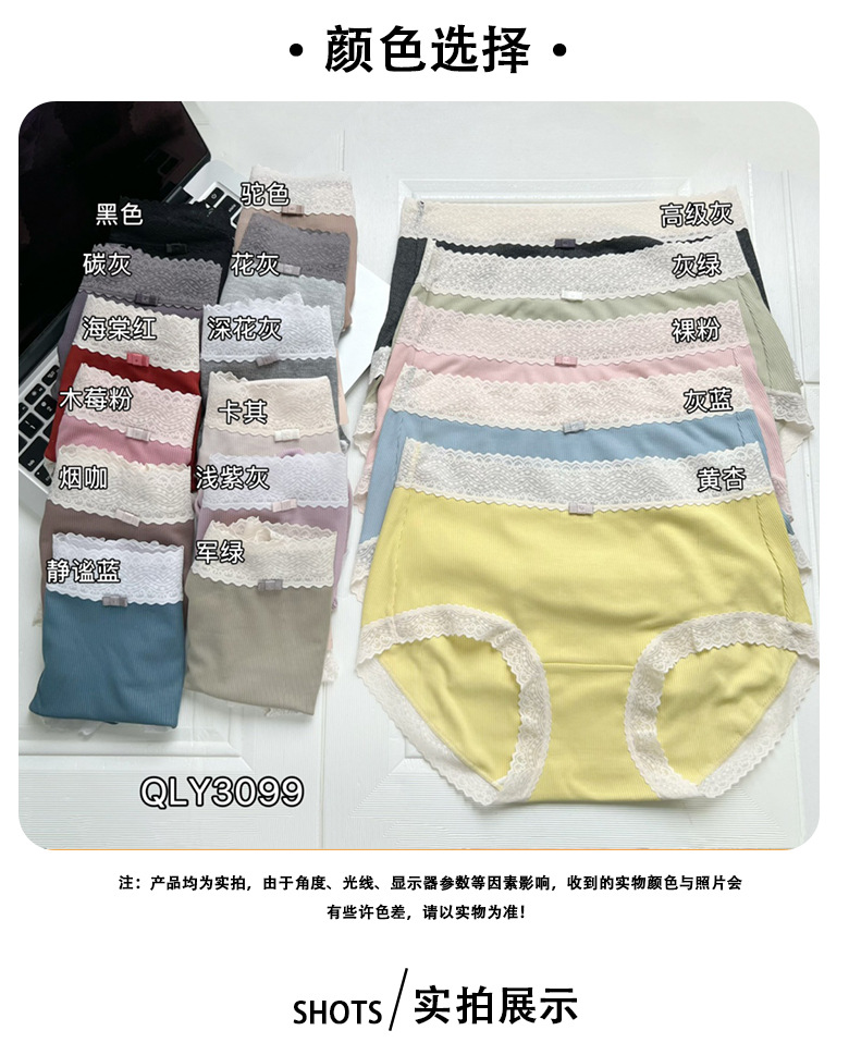 Xiaolan 스커트 3099 일본 미드 웨이스트 레이스 얇은 실 면 여성 단색 속옷 통기성 면 가랑이 팬티스토어 가기