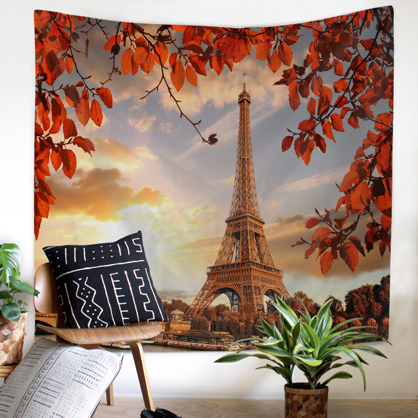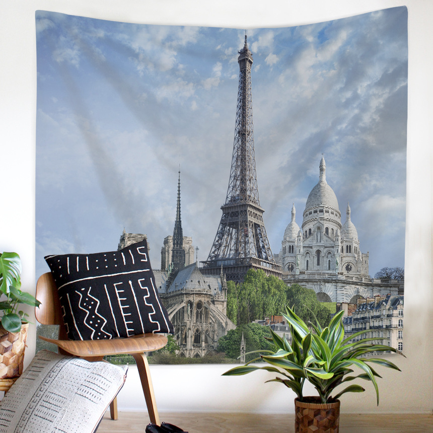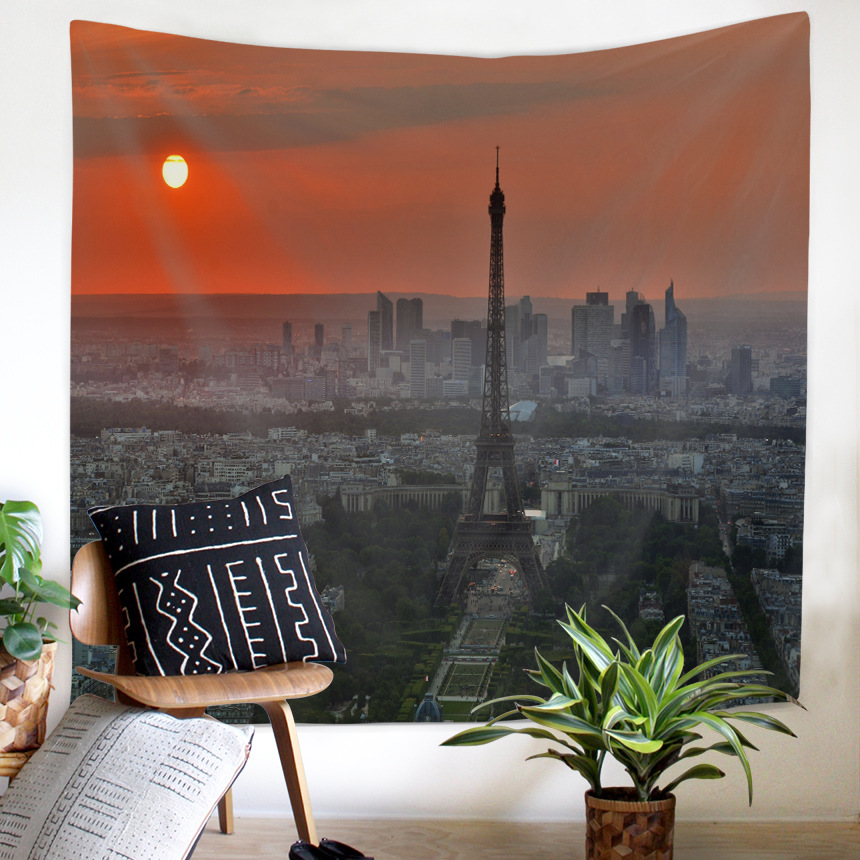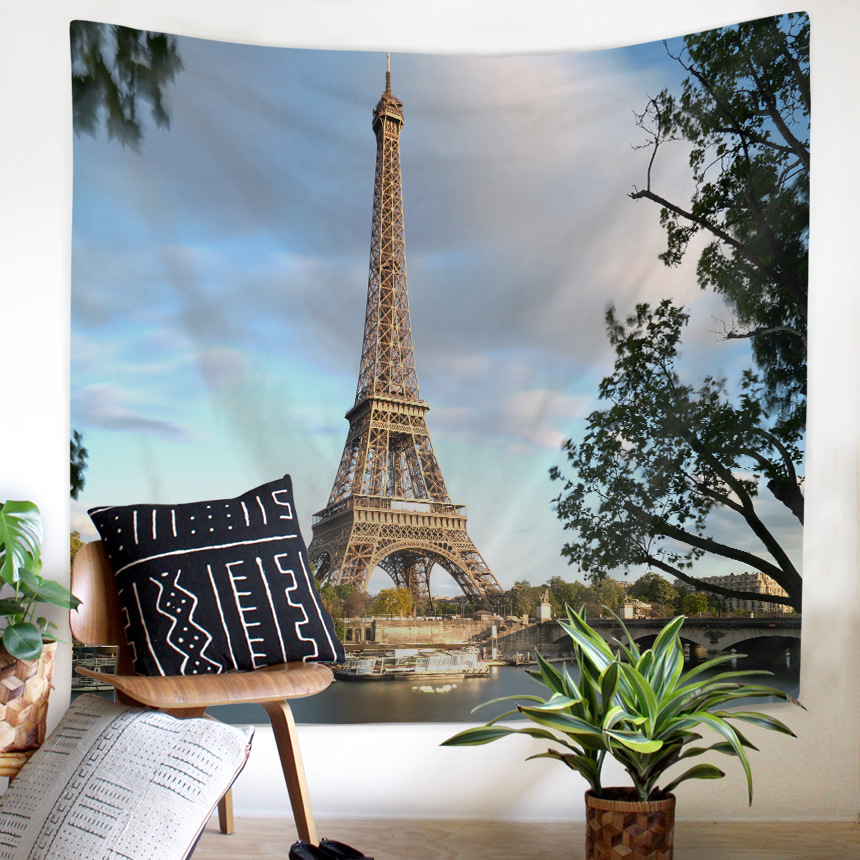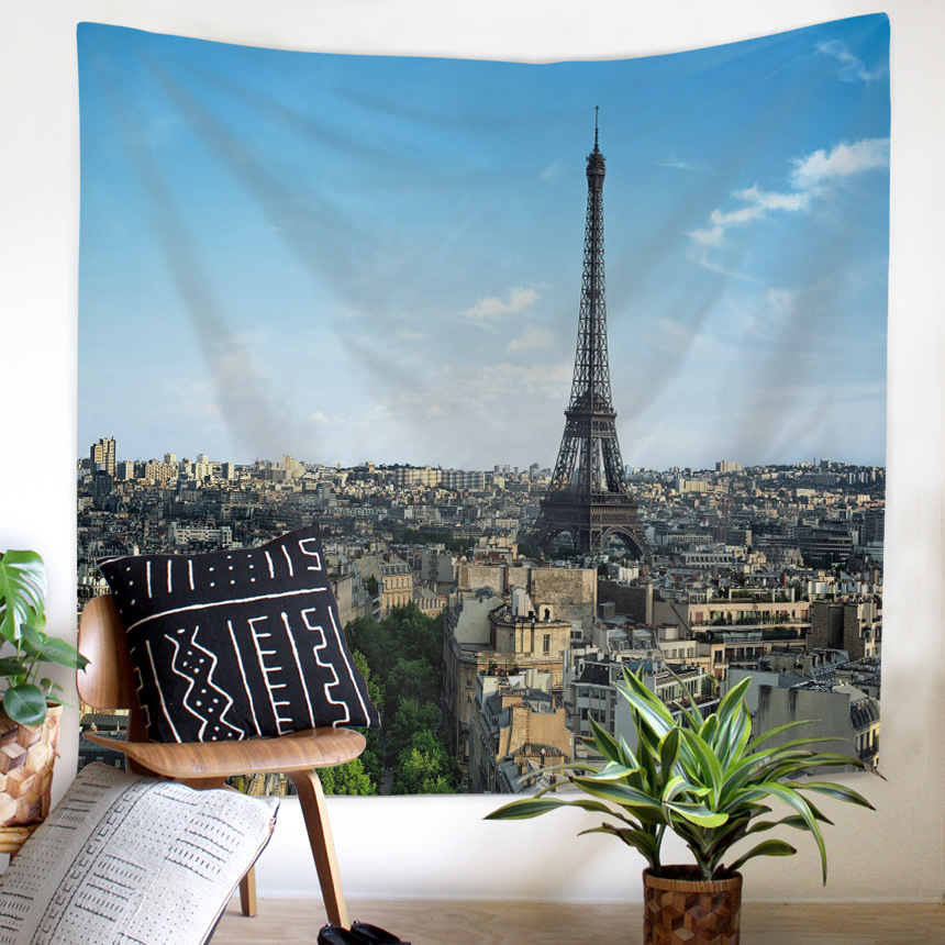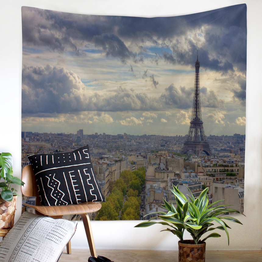 국경 간 북유럽 파리 타워 풍경 세트 폴리에스터 태피스트리 임대실 리노베이션 학생 기숙사 벽 배경 걸이 천스토어 가기