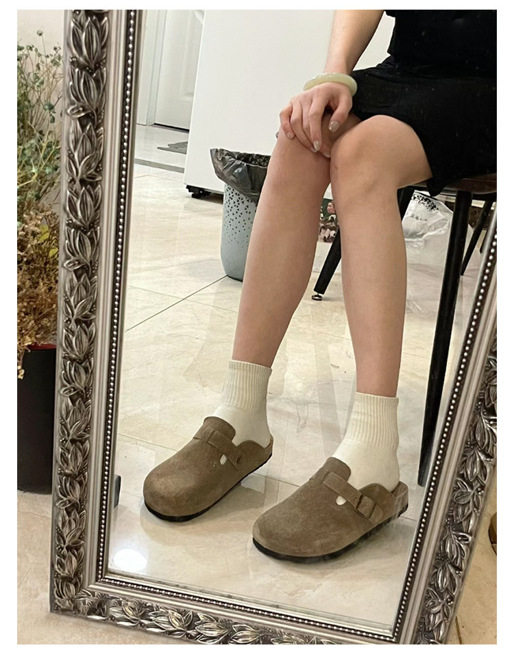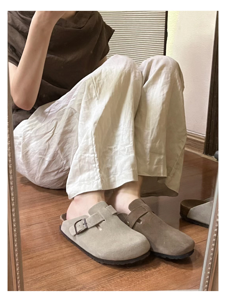버켄스탁 슈즈, 남녀공용 게으른 발가락 반슬리퍼, 아우터용 천연가죽 코르크 샌들, 캐주얼 레트로 버켄스탁 슈즈