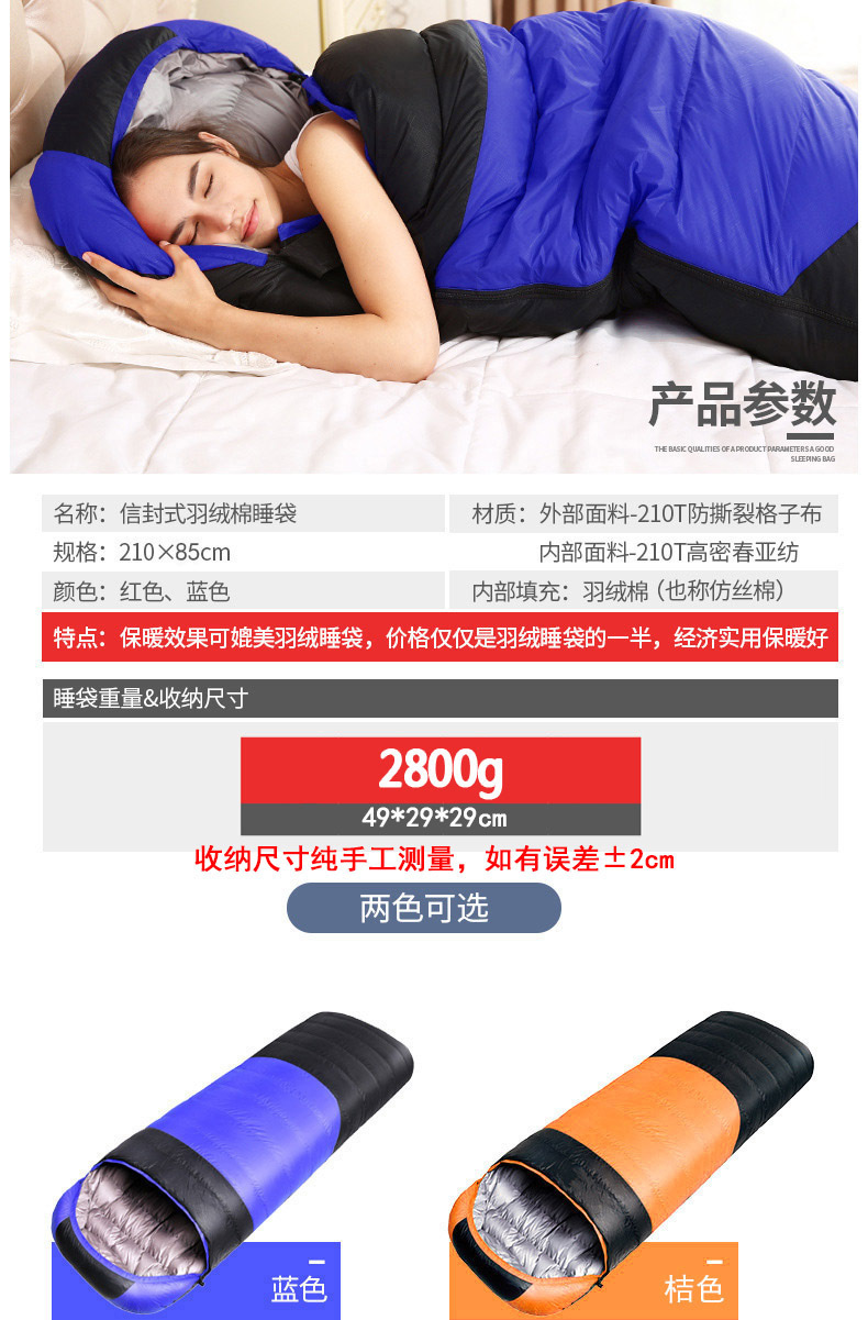 수천 개의 화려한 파도 야외 다운 면 침낭 2800G 성인 침낭 봉투 따뜻한 침낭 겨울 여행 캠핑 수면