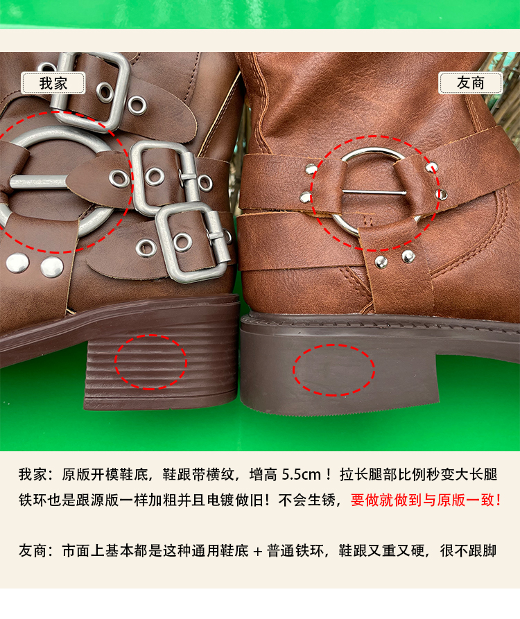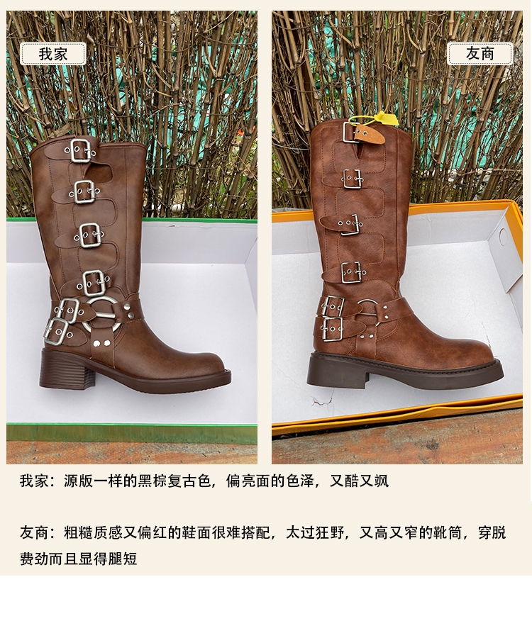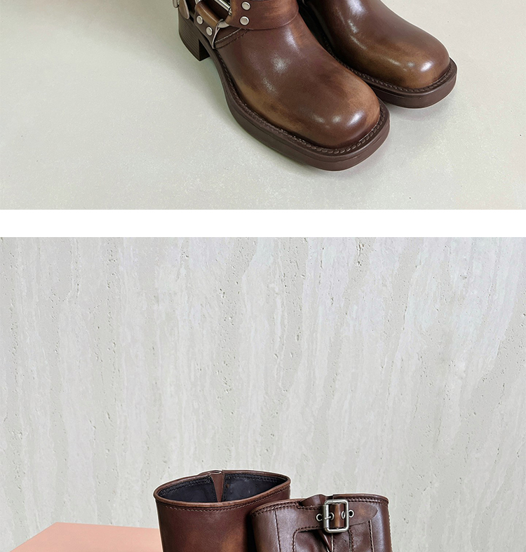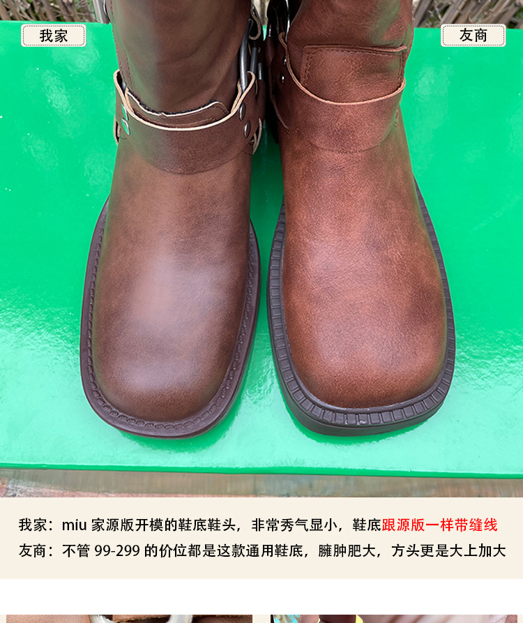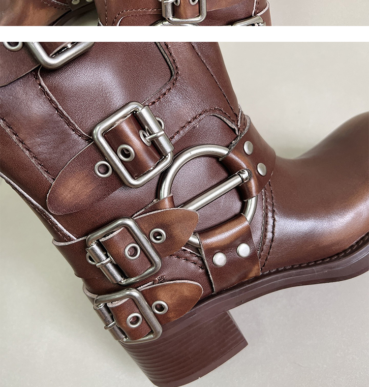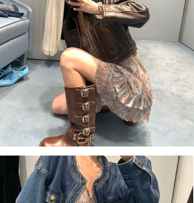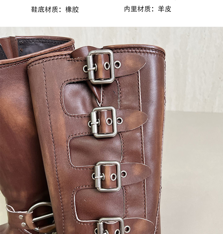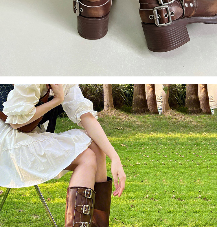 Miu * Catwalk 벨트 버클 두꺼운 굽 마틴 부츠 여성용 봄과 여름 정품 레트로 무릎 롱 부츠 웨스턴 부츠