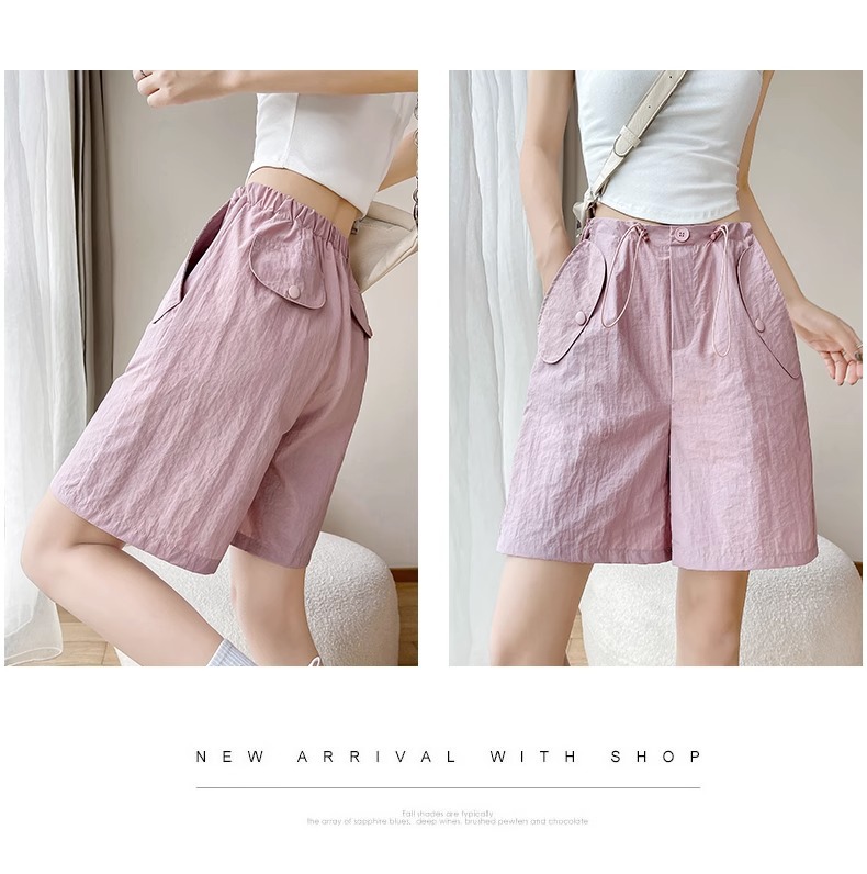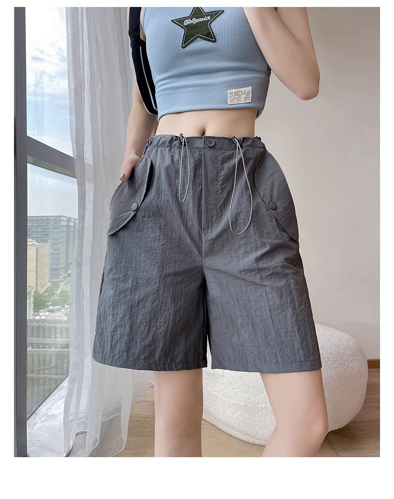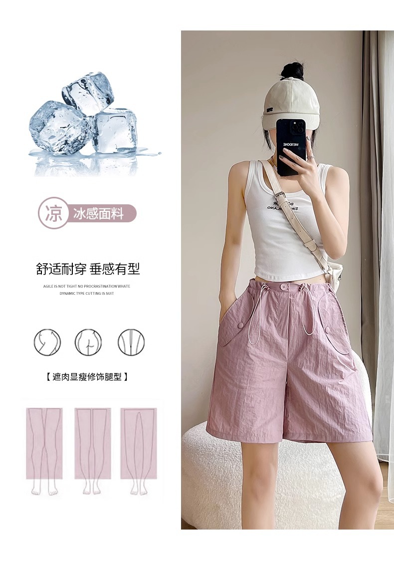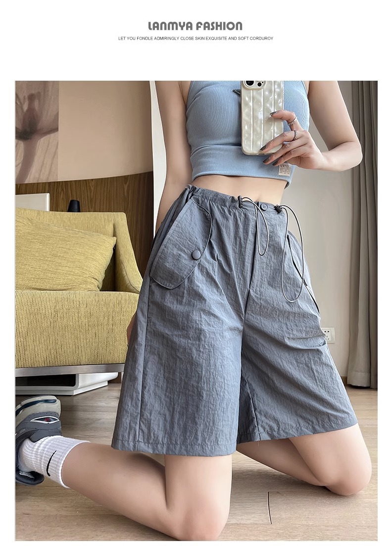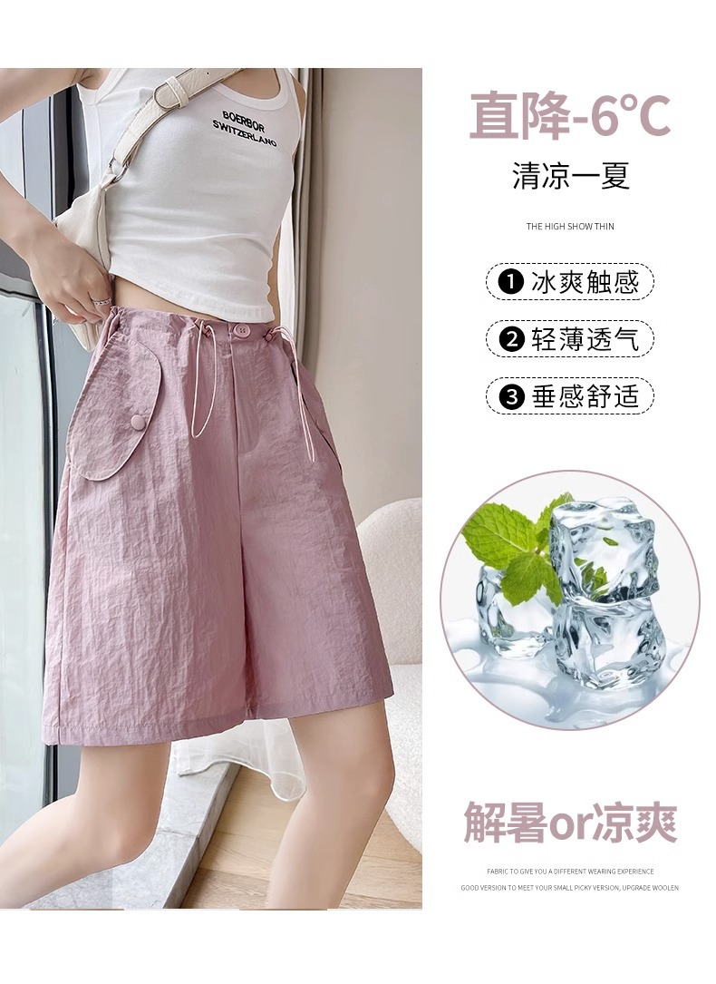 여성용 핑크 카고 반바지, 여름 루즈한 얇은 속건 스포츠 팬츠, 하이웨이스트 와이드 레그 캐주얼 팬츠스토어 가기