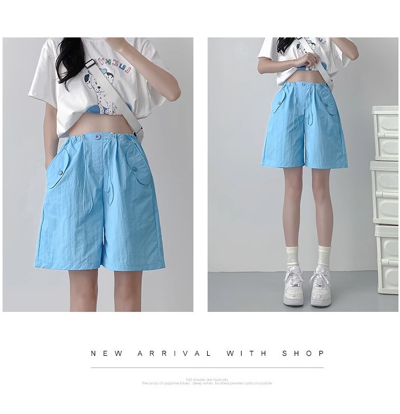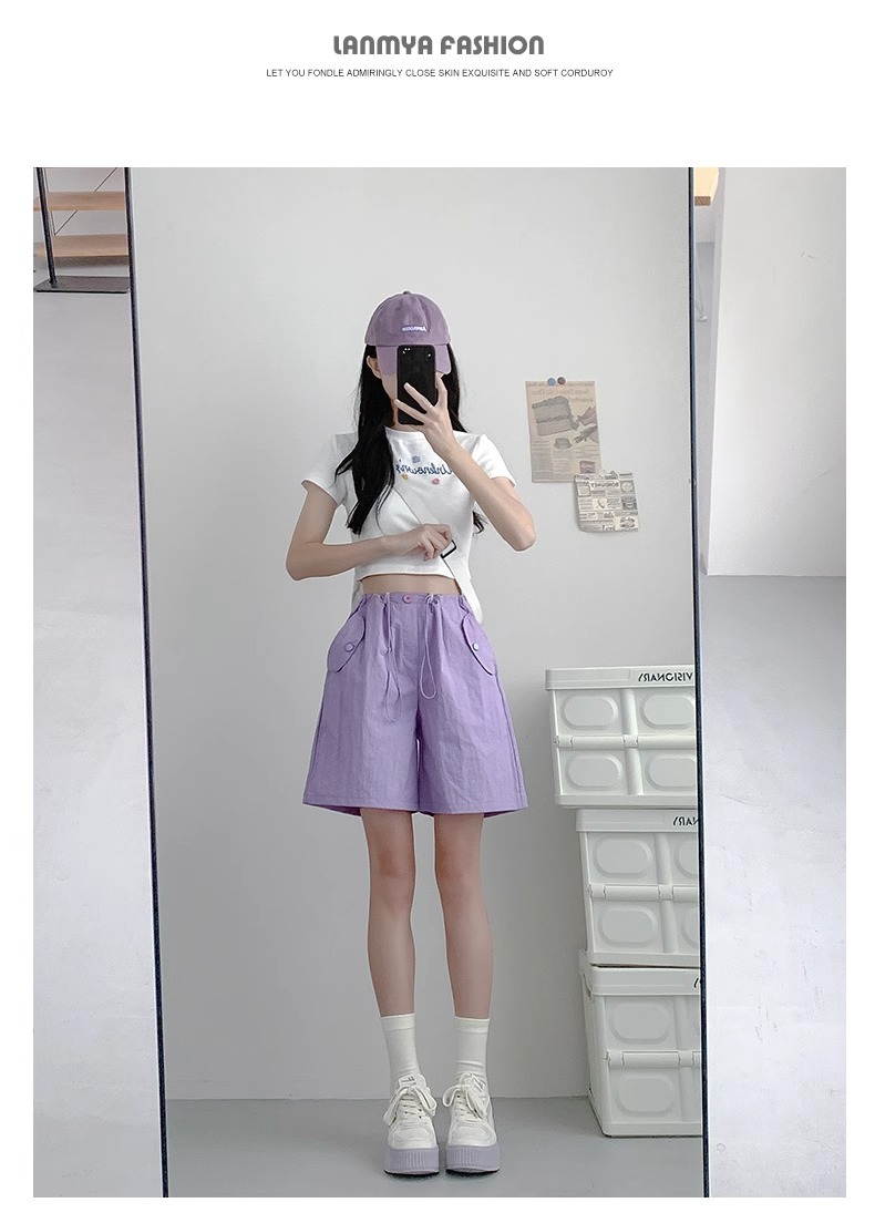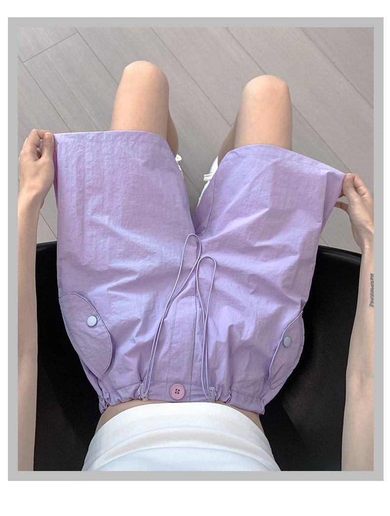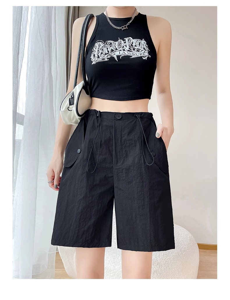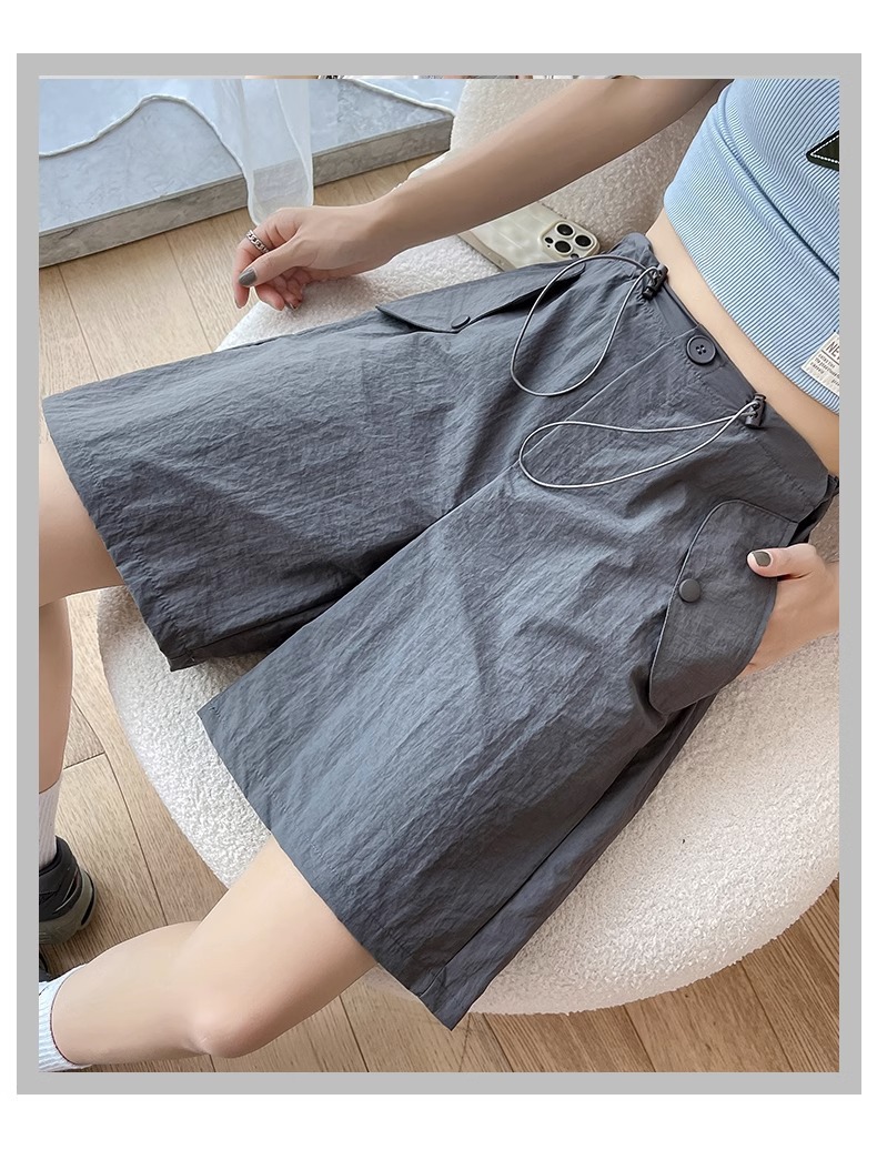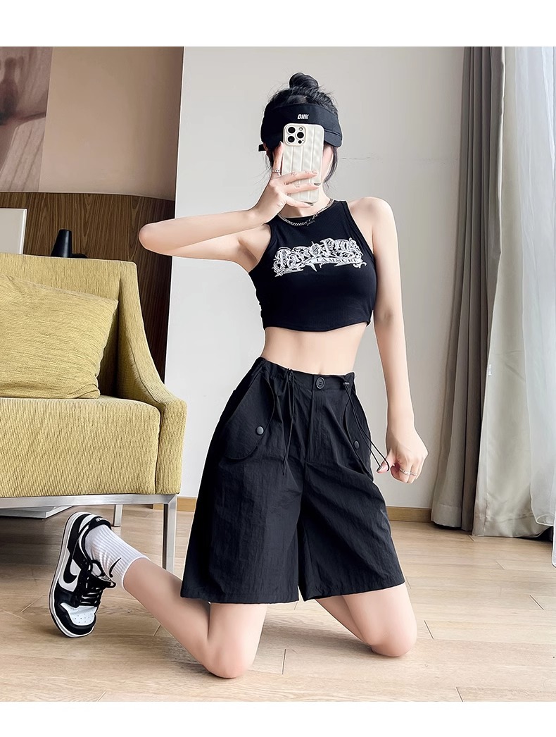 여성용 핑크 카고 반바지, 여름 루즈한 얇은 속건 스포츠 팬츠, 하이웨이스트 와이드 레그 캐주얼 팬츠스토어 가기