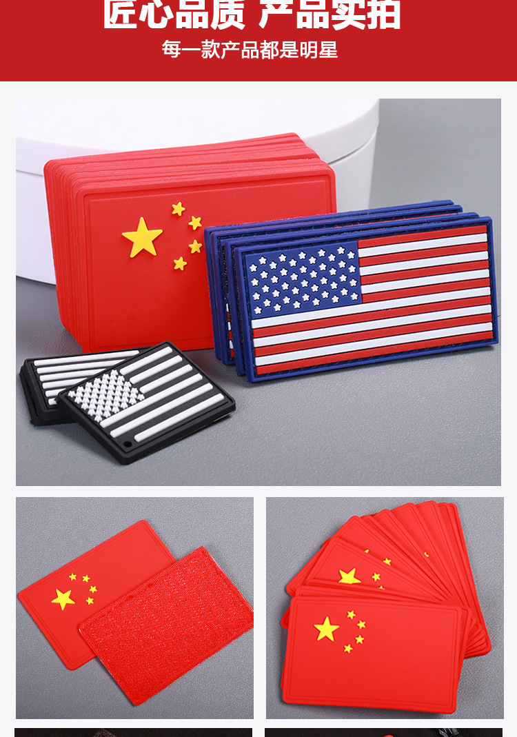 공장 재고 PVC 소프트 플라스틱 국기 라벨 패치, 벨크로 팔찌, 의류, 헬멧, 배낭, 라벨, 가죽 라벨