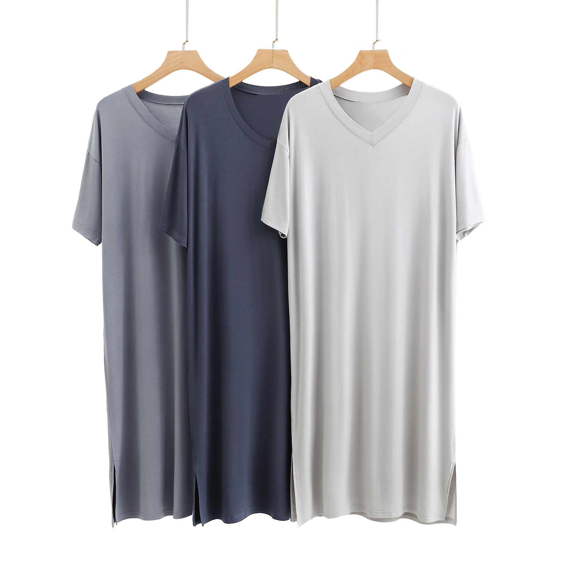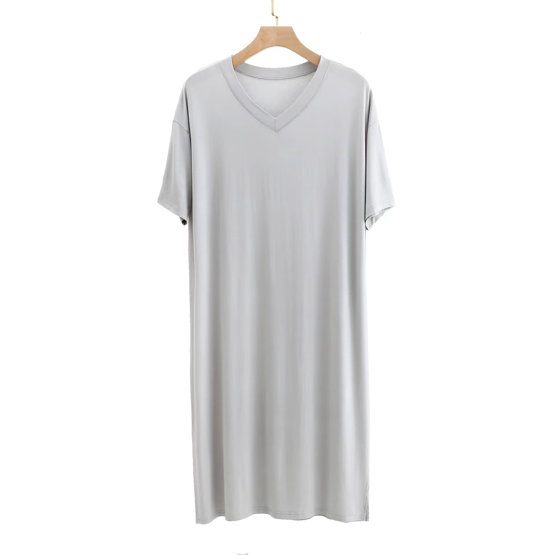모달 면 잠옷 남자의 여름 새로운 플러스 사이즈 느슨한 V-넥 단색 홈웨어 얇은 겉옷을 입고 잠옷스토어 가기