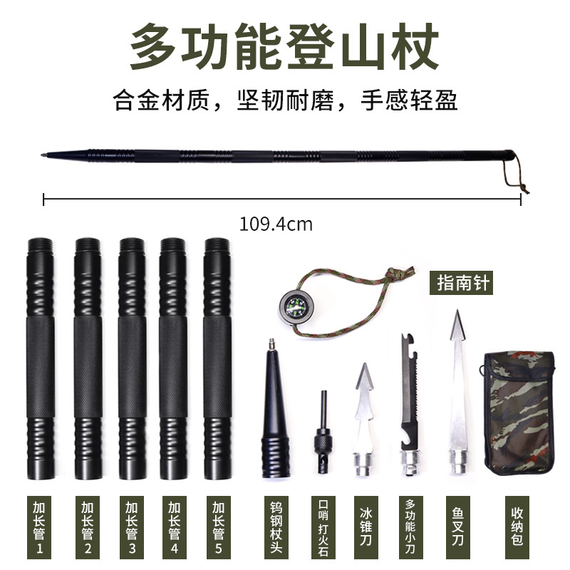 새로운 야외 용품 멀티 세트 기능 클라이밍 폴 알루미늄 합금 야외 스틱 TikTok 라이브 등반 자기 방어 장비스토어 가기
