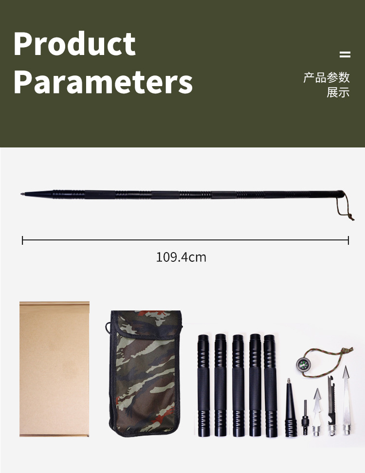 새로운 야외 용품 멀티 세트 기능 클라이밍 폴 알루미늄 합금 야외 스틱 TikTok 라이브 등반 자기 방어 장비