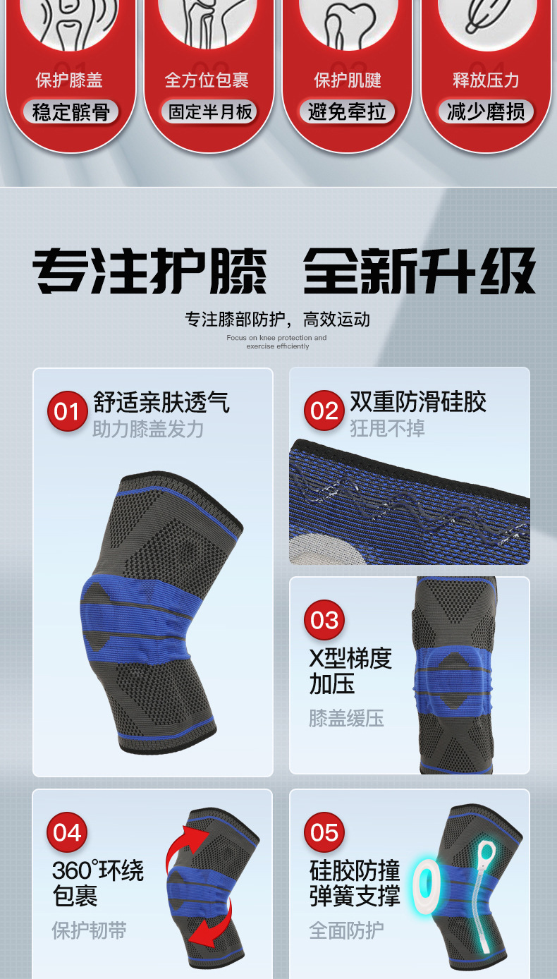 备注:基础款是无硅胶 无弹簧条基础防护护膝