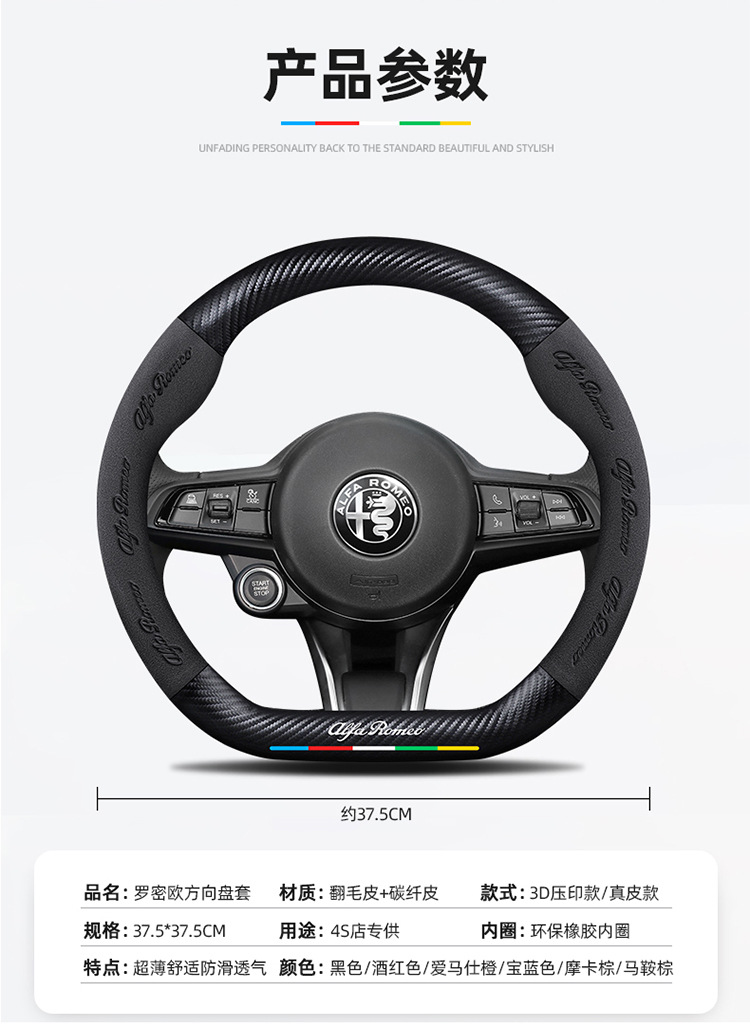 알파 Stelvio Stelvio Giulia 줄리엣 스티어링 휠 커버 탄소 섬유 스웨이드 가죽 커버에 적합스토어 가기