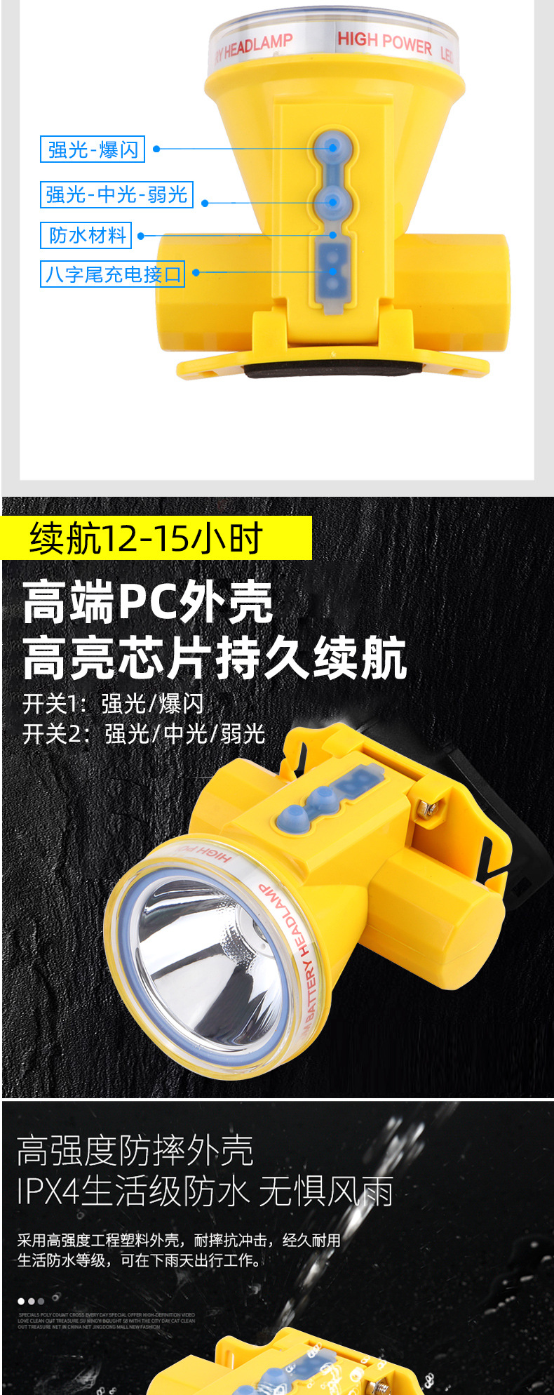 • XJ-4615 (광산 모자 판) 슈퍼 방수 지구력 8-10 시간