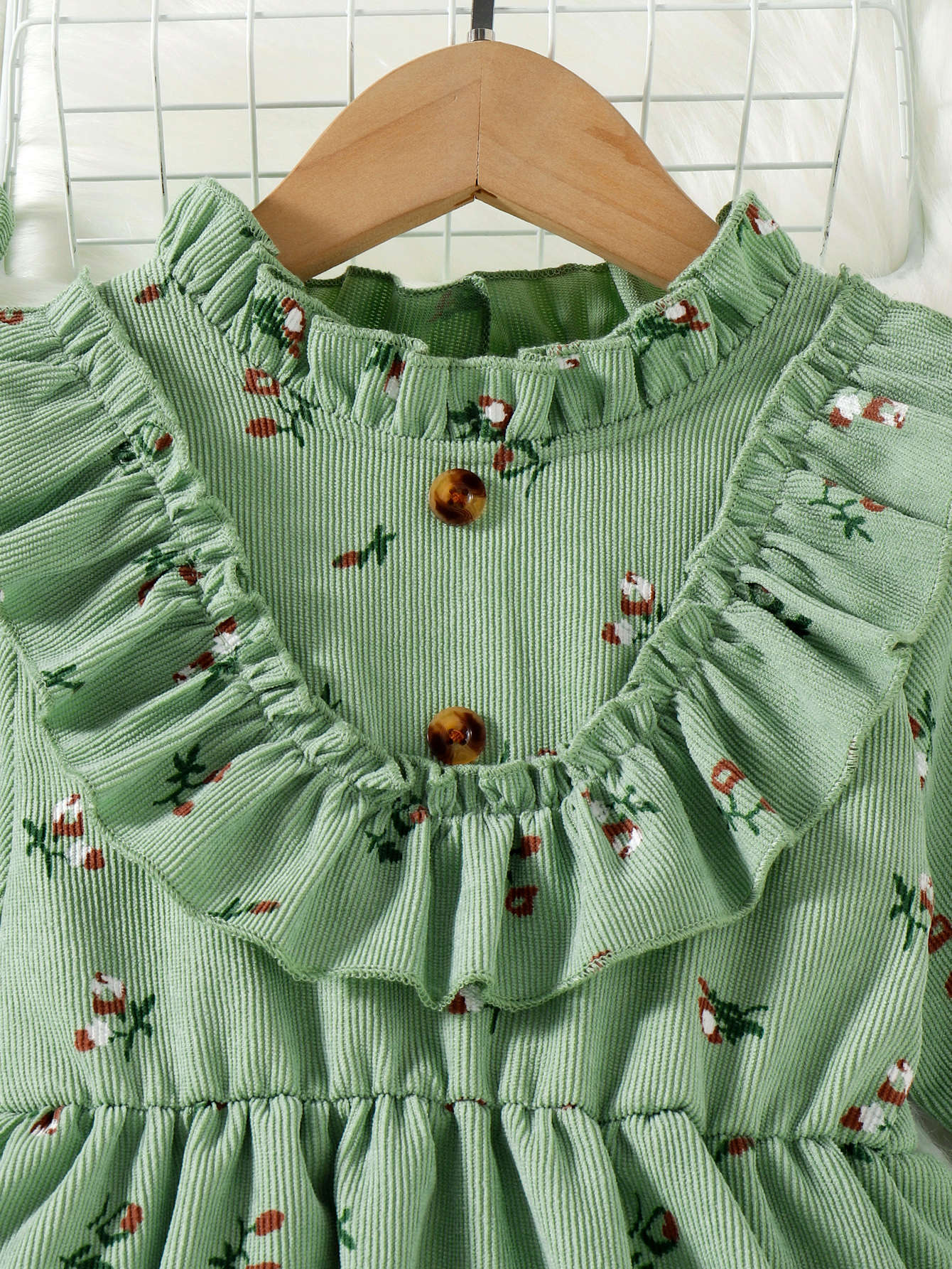 Baopai 어린이 착용 유럽과 미국 가을과 겨울 귀여운 소녀 코듀로이 꽃 인쇄 레이스 긴 소매 가방 어린이 원피스