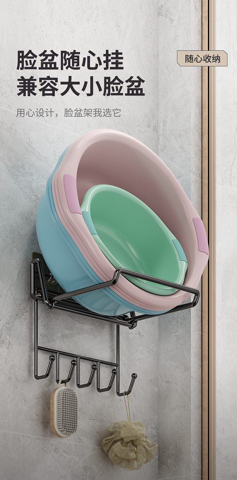 • 접이식 스테인레스 스틸 비 후크 세면대