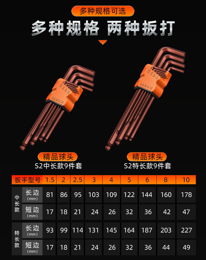 S2 합금강 육각 렌치 9피스 육각 도구 육각 드라이버 세트 도매 고경도스토어 가기