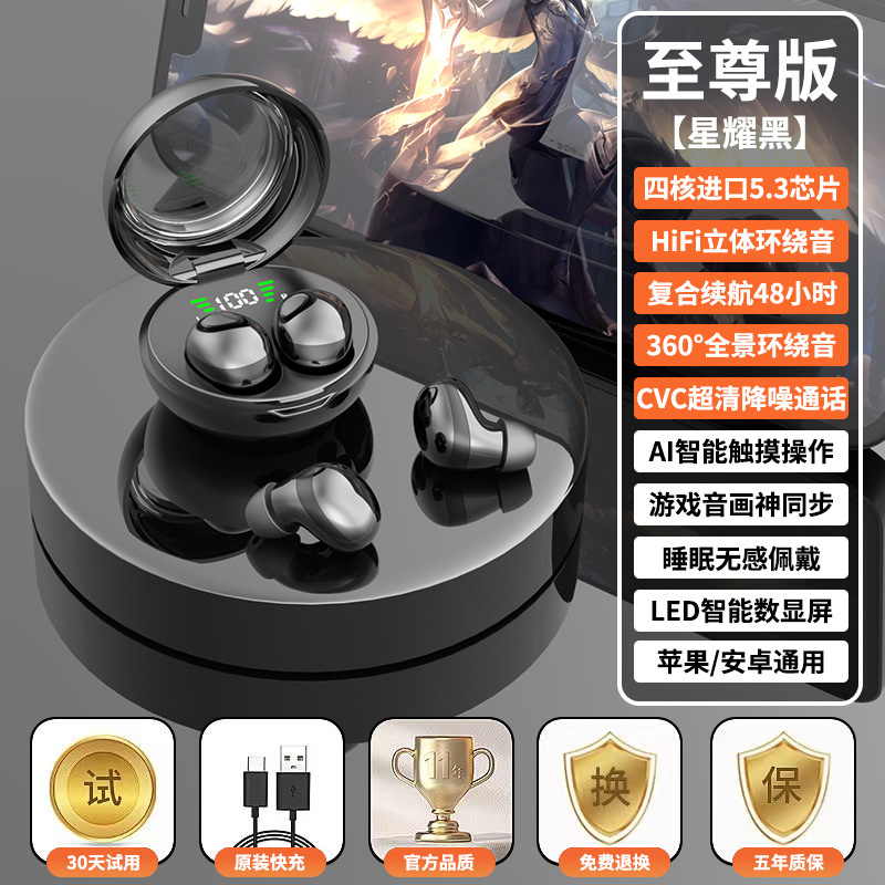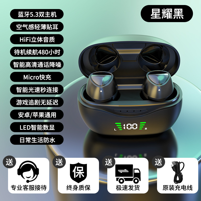 538 블루투스 헤드셋 5.3 새로운 가볍고 얇은 미니 소형 소음 감소 디지털 디스플레이 장수명 국경 간 도매 공장스토어 가기